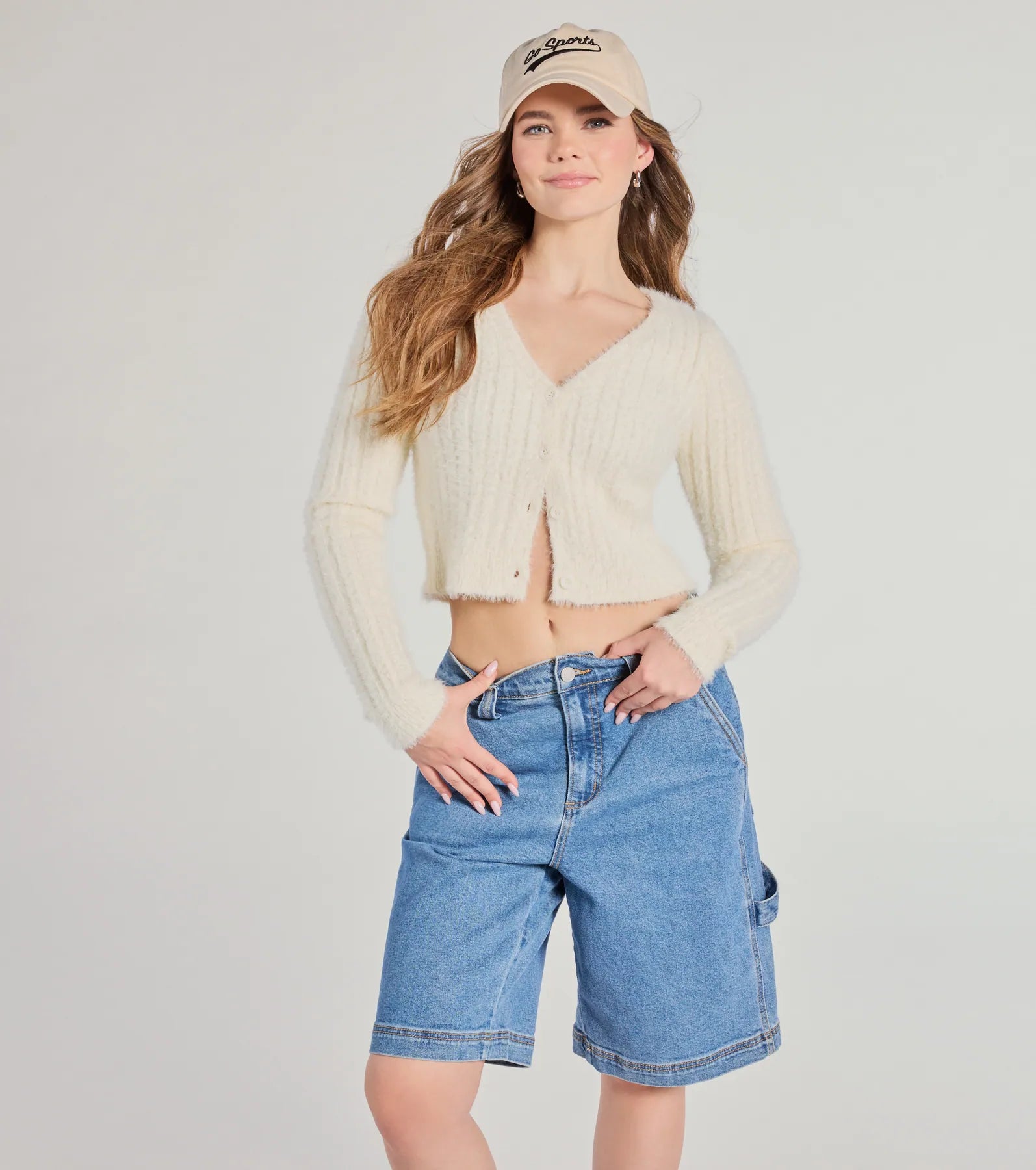 Adorably Cozy Eyelash Knit Button-Down Cardigan