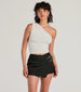 Look chic and stylish for any plans in this mini skort! This high-rise waist skort features dual...