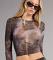 Your night-out fit just leveled up. This abstract print mesh crop top brings a sleek. second-skin vibe...
