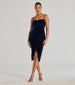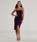 Special OccasionA velvet midi formal dress features a sultry cowl neckline and corset bodice that leads to...