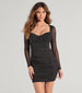 All About The Glitz Glitter Mesh Long Sleeve Mini Dress