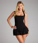 Catch all the compliments. This mini halter dress features a fitted bodice and a flirty. layered skirt....