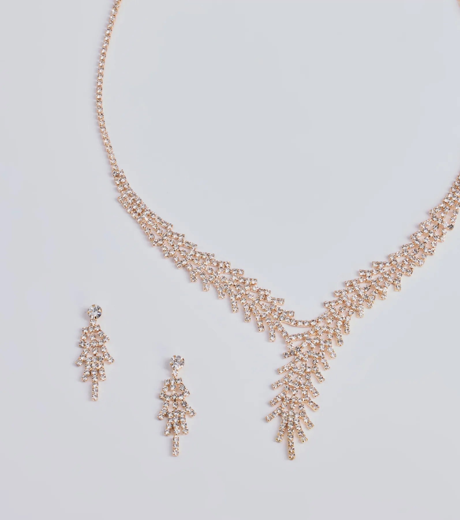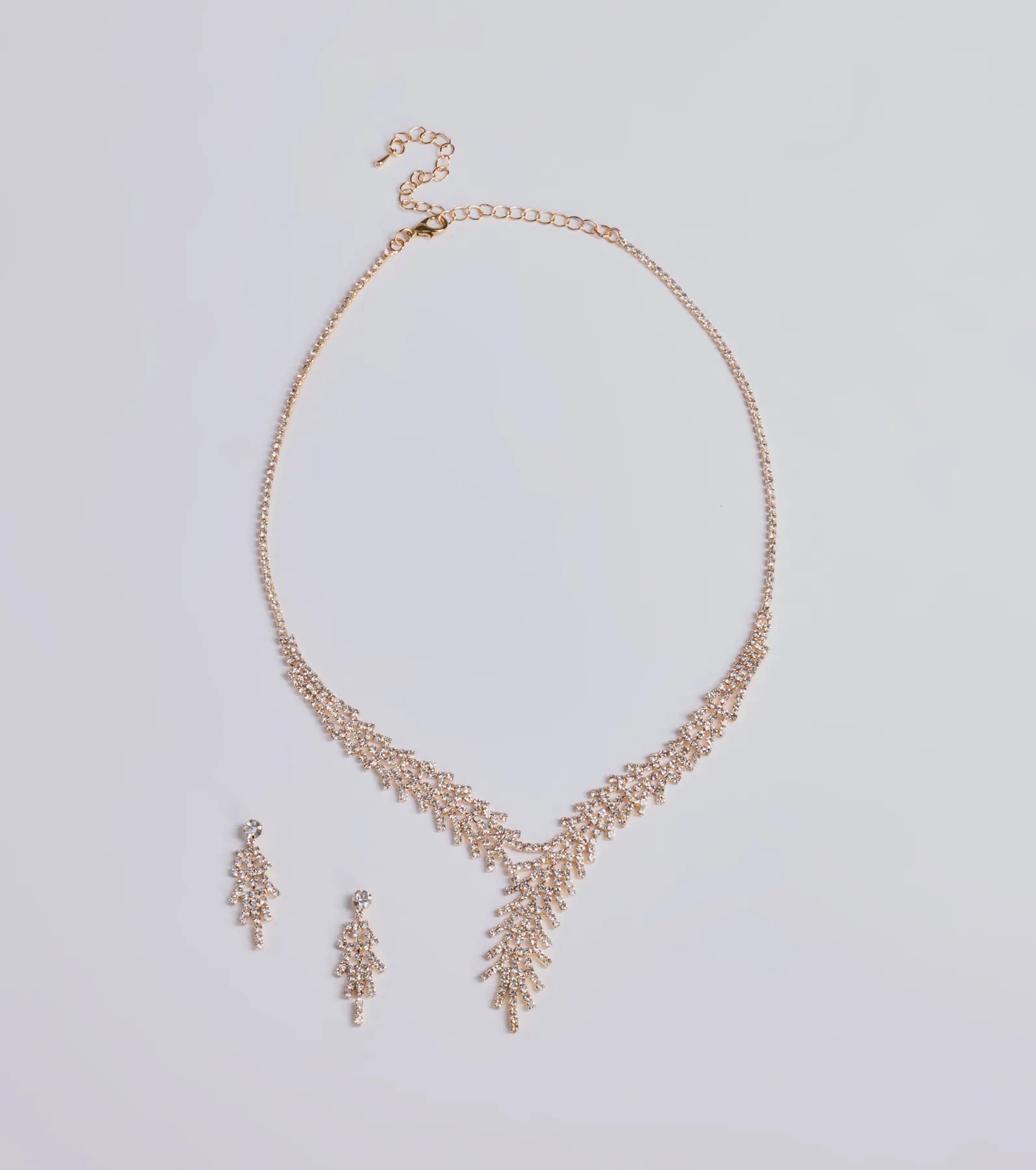 All That Glitz Rhinestone Fringe Necklace And Earrings Set