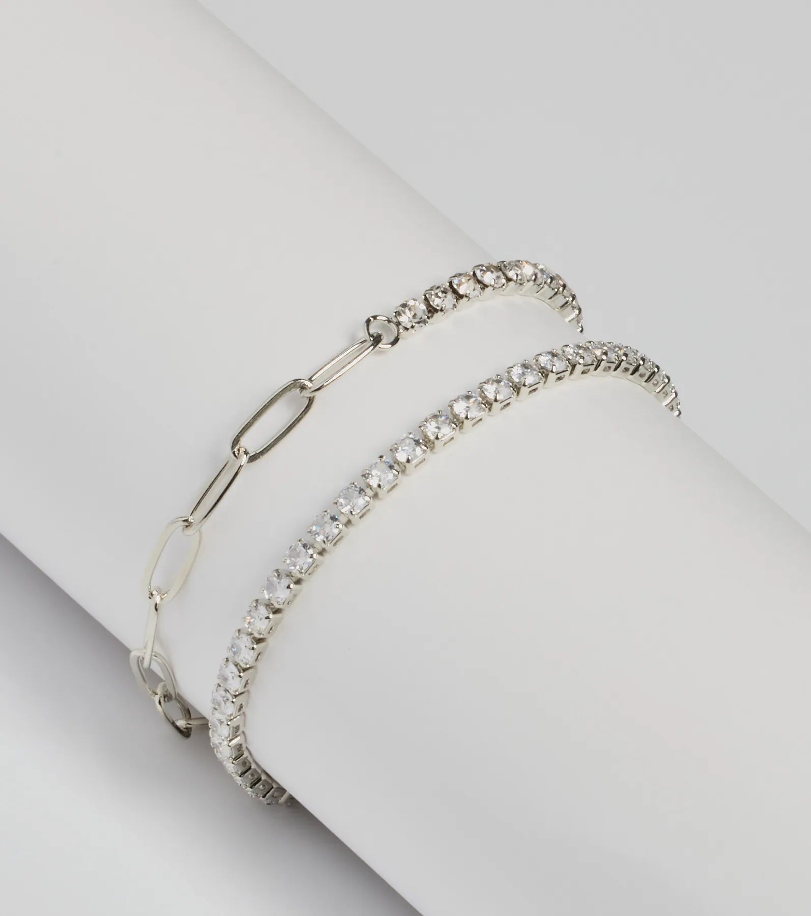 Bling it on with the all the luxe two-pack bracelet set. Featuring a chic chain-link and a...