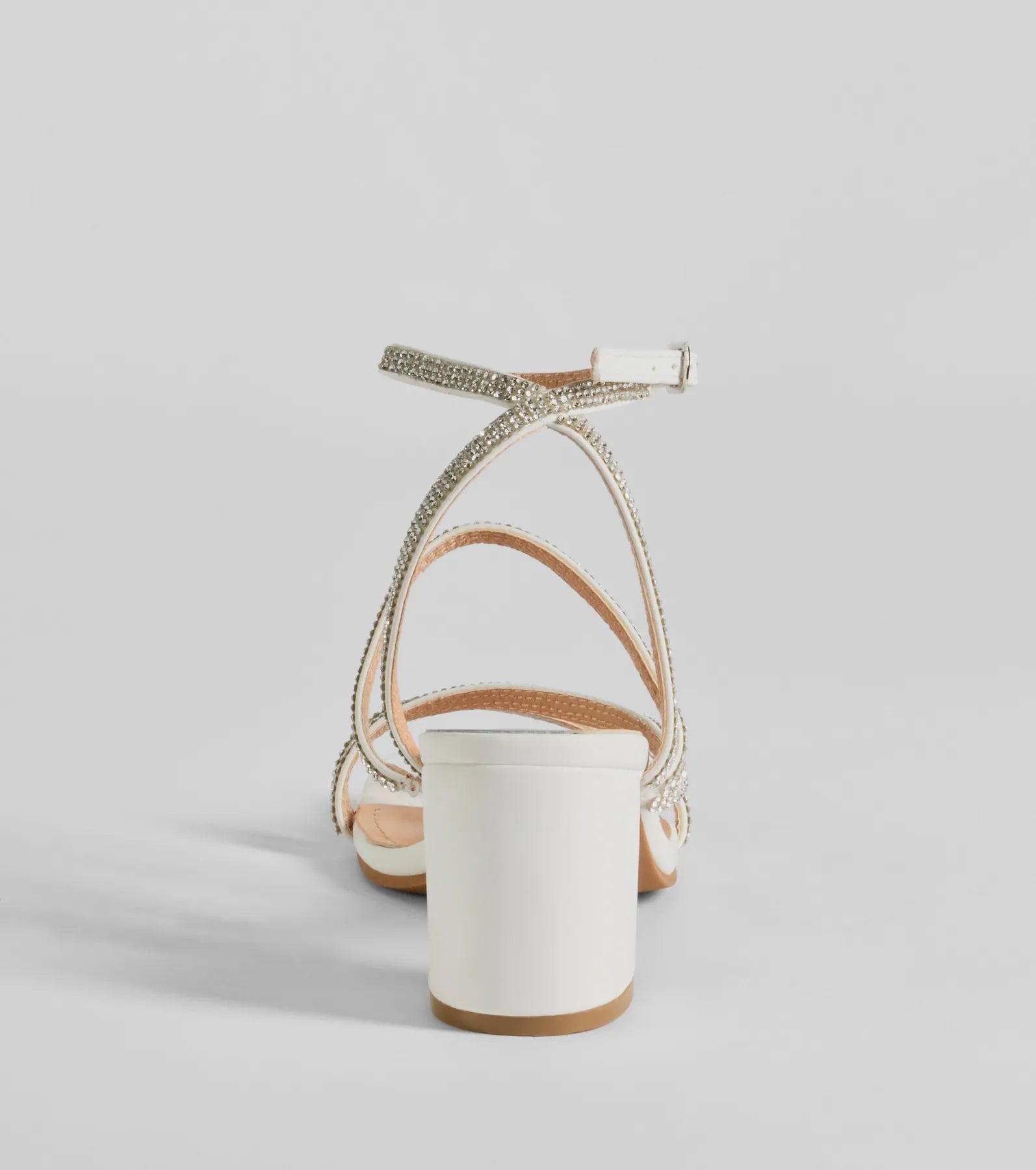 These glam faux leather heels feature a rhinestone embellished strappy design and a short block heel. Perfect...