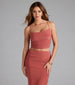 Embrace the sultry vibes of this cowl neck crop top for your next happy hour spree! Pair...