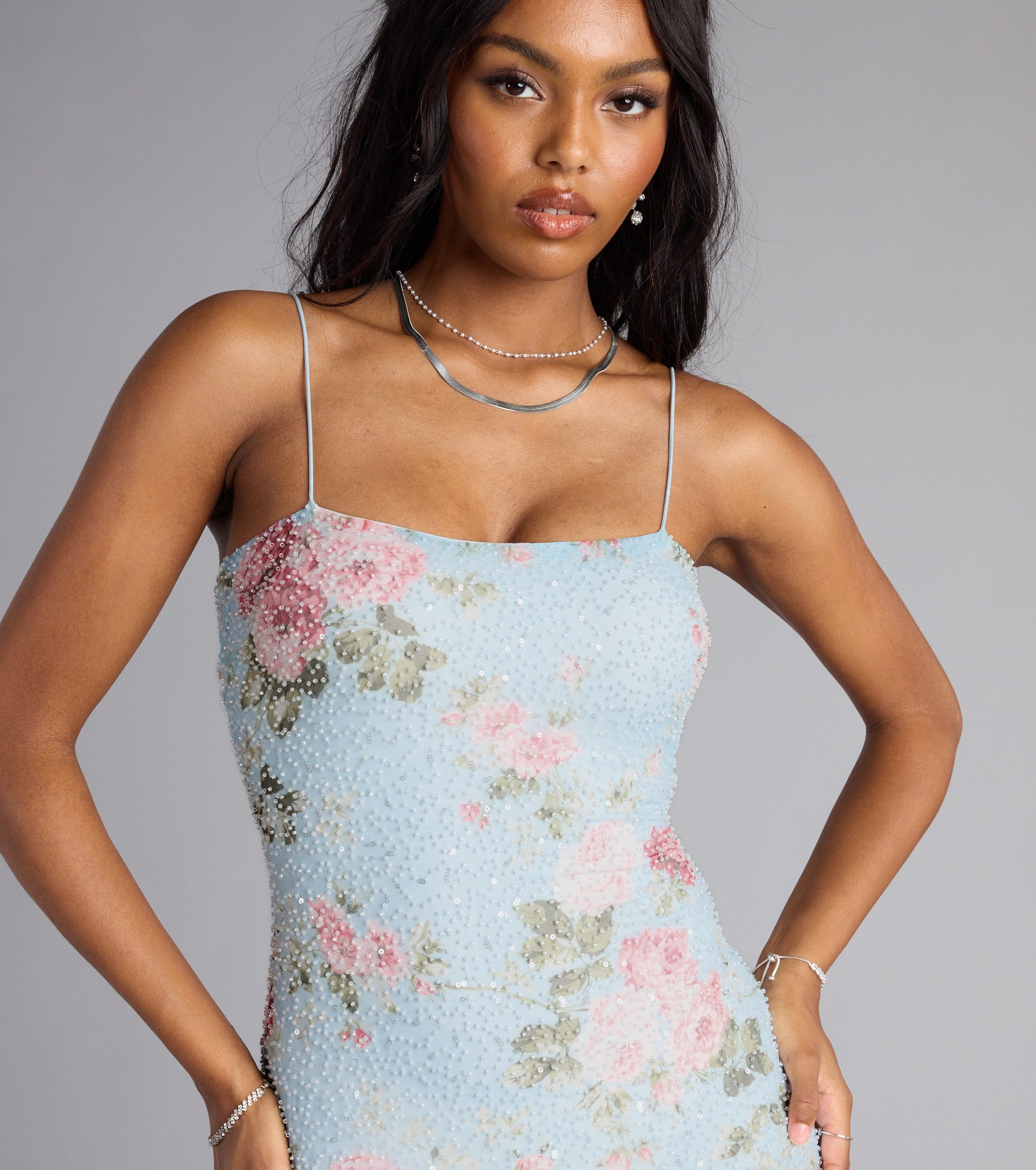 Special OccasionThe Analeia floral beaded mini dress brings a playful and fresh energy to your night! This...