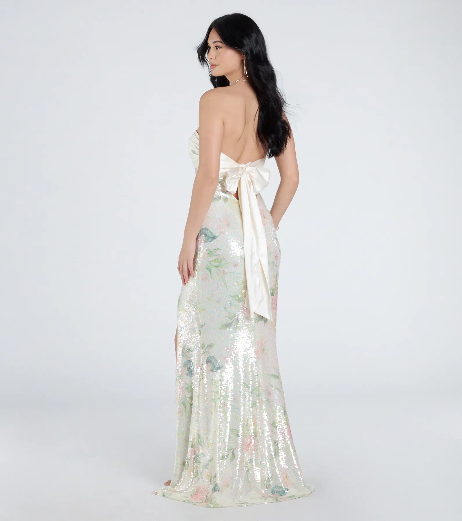 Angelina Satin Tie-Back Floral Sequin Formal Dress