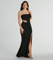 Subtle elements make the Angelique crepe formal dress a show-stopping look at galas. banquets. and black tie celebrations! Made with luxurious crepe fabric. this floor-length dress will make you feel glamorous. The flattering square neckline and rhinestone-embellished adjustable spagehtti straps add sophisticated sparkle while the padded bra cups provide comfort. With a stunning side cutout adorned with a rhinestone embellished strap for a luxe factor and a high front slit to show off some skin. this elegant mermaid dress will ensure all eyes are on you! Complete the look with earrings. a bracelet. and a clutch!