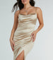 Special OccasionWrap yourself in the sleek and stunning Annabelle knit satin formal dress for effortless glamour! She...