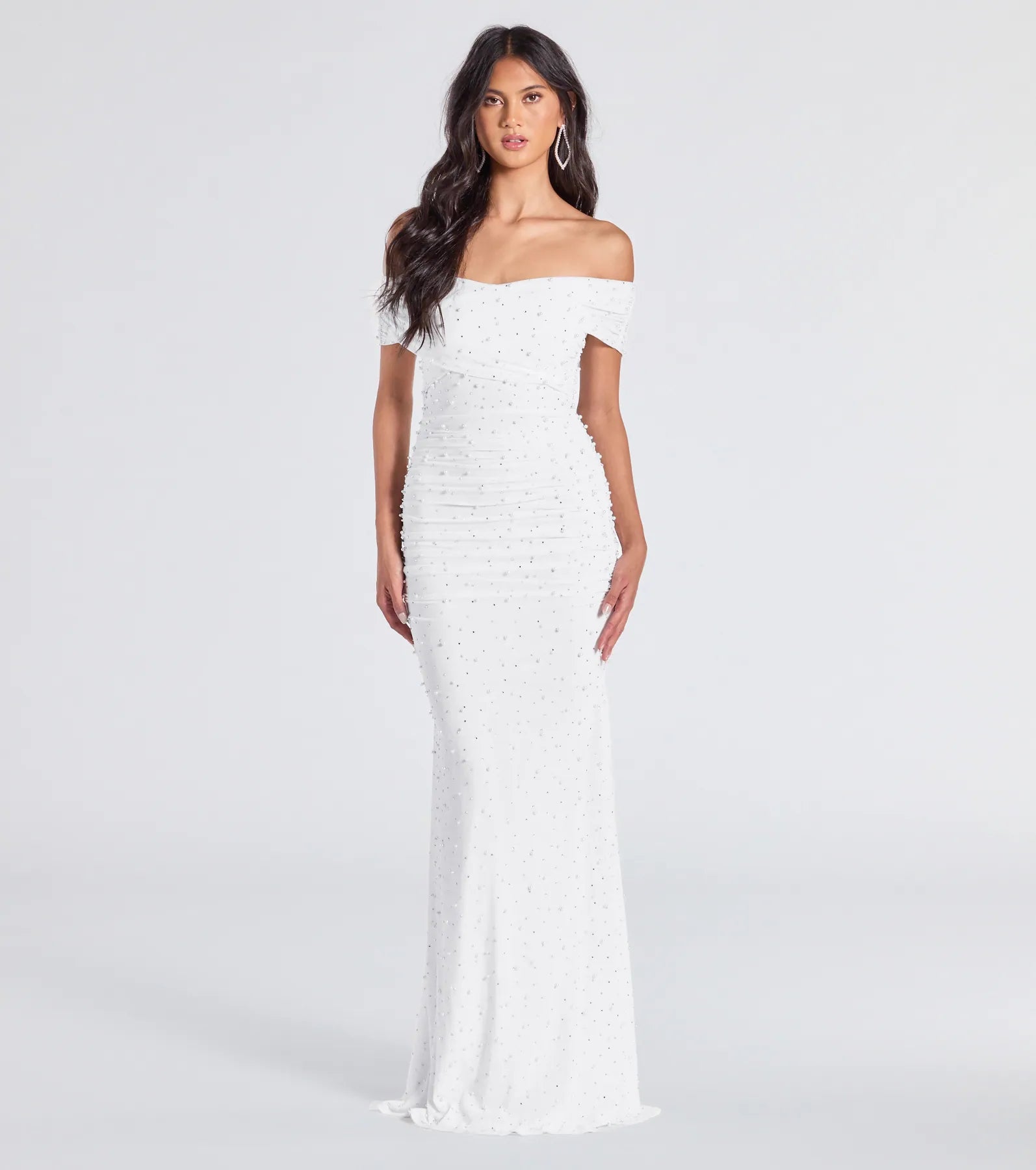 Aubriella Rhinestone And Pearl Mesh Mermaid Dress