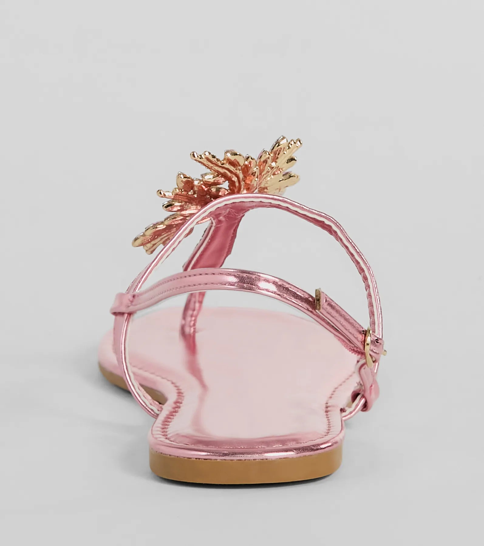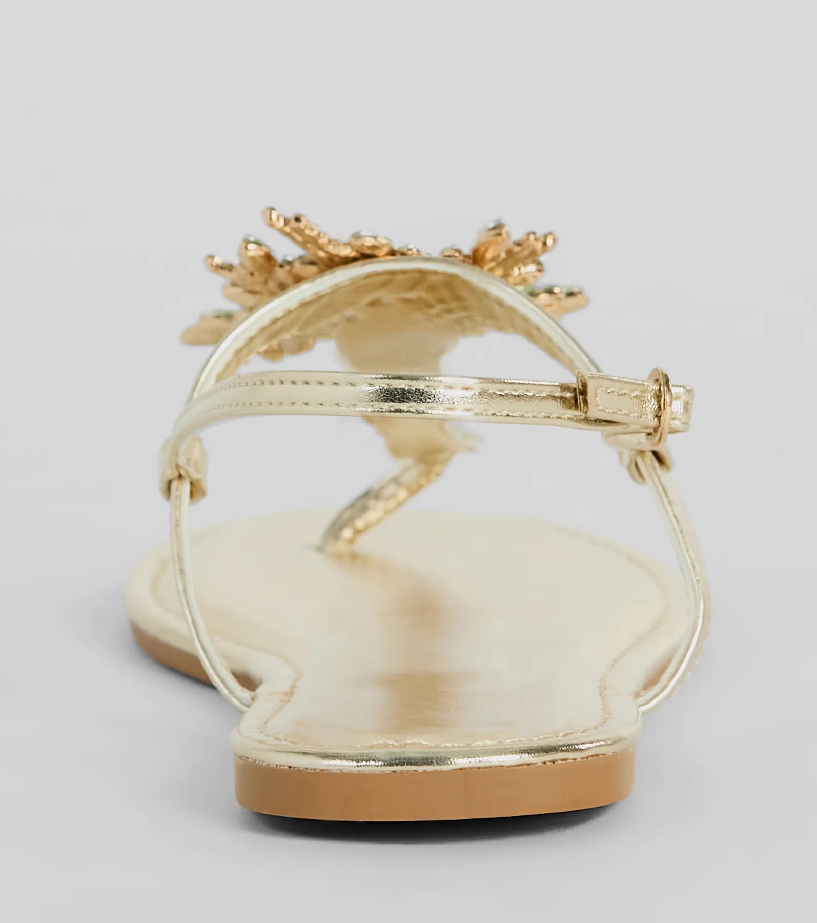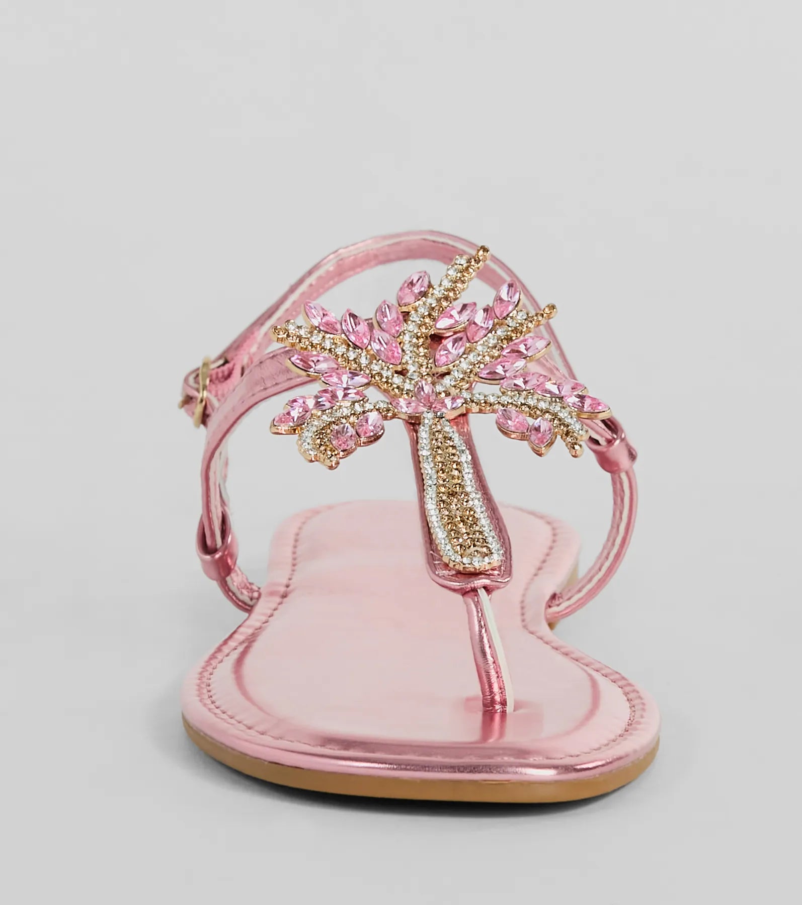 Beachy Glam Rhinestone Palm Tree Metallic Sandals