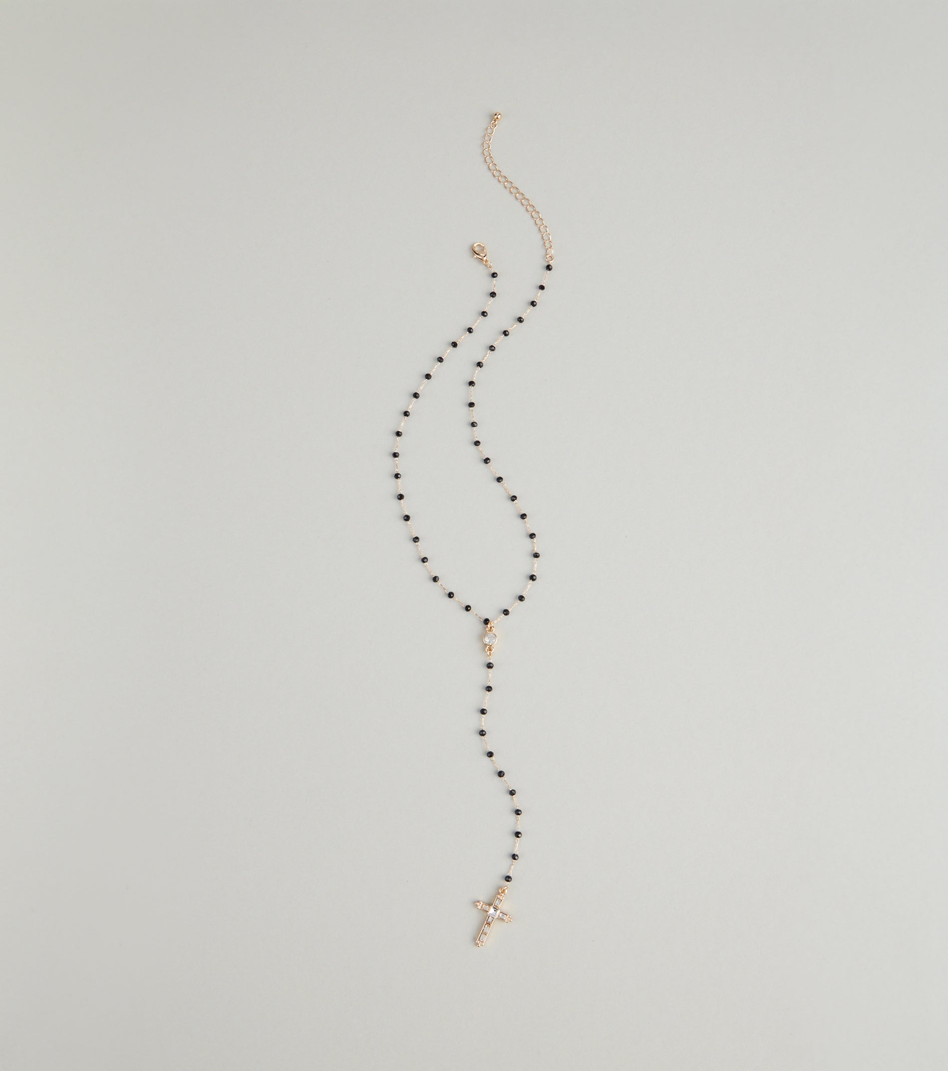 Simple yet striking. this beaded chain necklace features delicate black beads and a sparkling cross pendant for...
