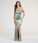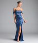 Belinda Off-The-Shoulder Slit Satin Formal Dress