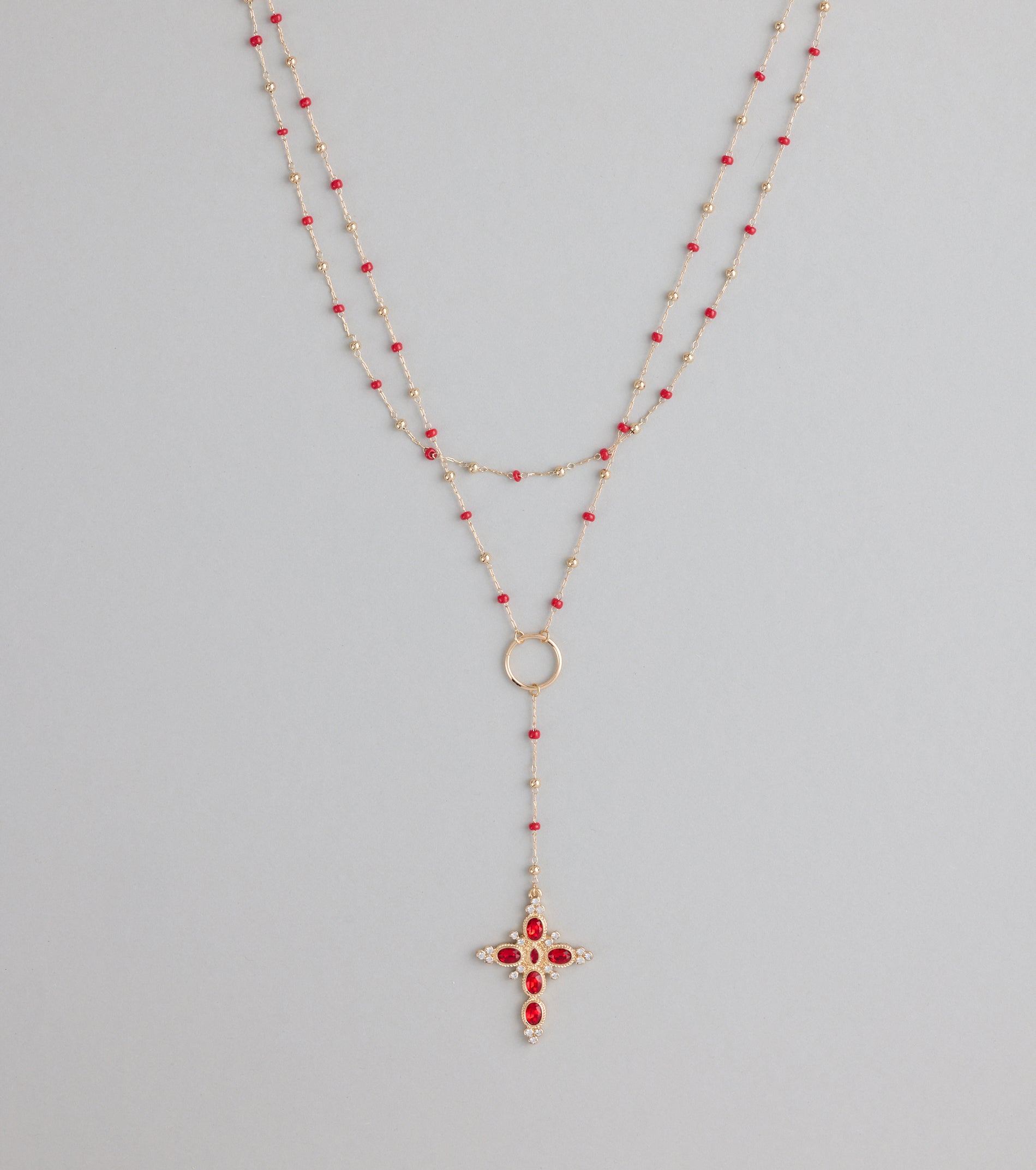 This necklace is giving saint with a wild side. The delicate layers and bold cross charm were...