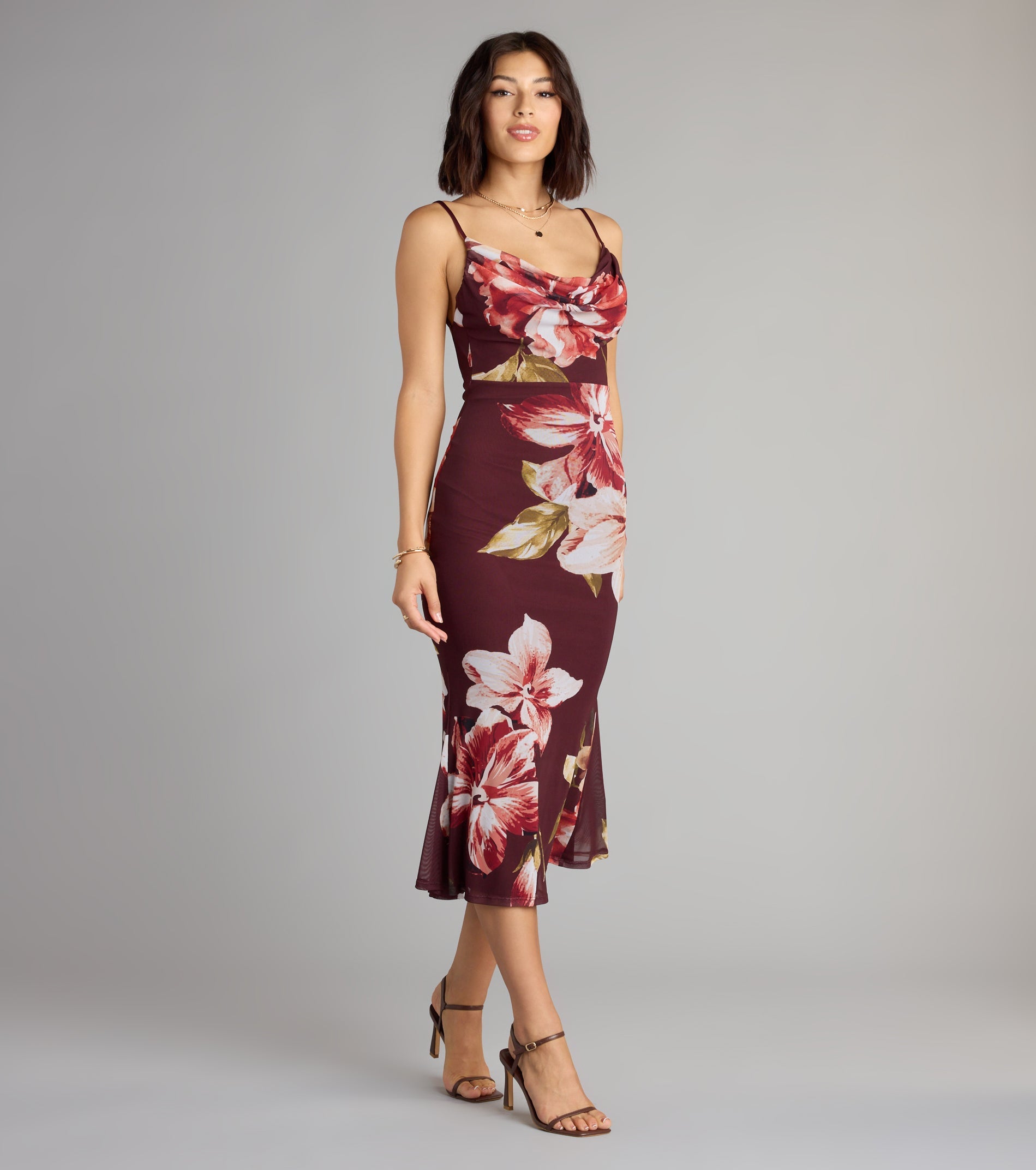 Soft. sultry. and ready for sunset dinner and drinks—this floral midi dress brings the heat with a...