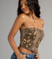 Earthy tones meet dreamy details—this strapless corset top stuns with floral embroidery and a structured fit that...