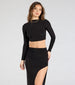 A bold long sleeve crop top that'll be a staple in your weekly lineup! Style it with...