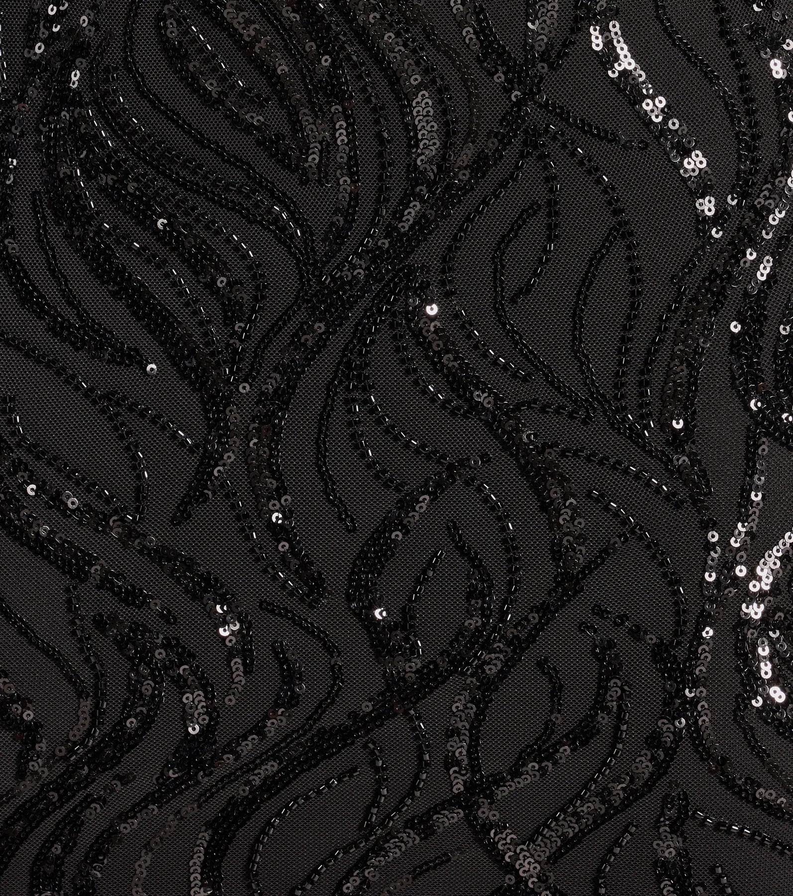 Brea Sequin Beaded Long Sleeve Cowl Back Mini Dress