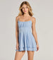 Bring the glitz in this glitter mini dress flaunting a a flirty double-layered skater silhouette perfect for...