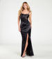 Caitlin Sequin Applique Slit Mermaid Satin Formal Dress