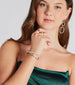 Captivate them with your stunning beauty and accessorize with this glimmering rhinestone bracelet! It features a chic...