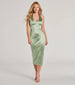 Celebrate Love Halter V-Neck Bodycon Satin Midi Dress