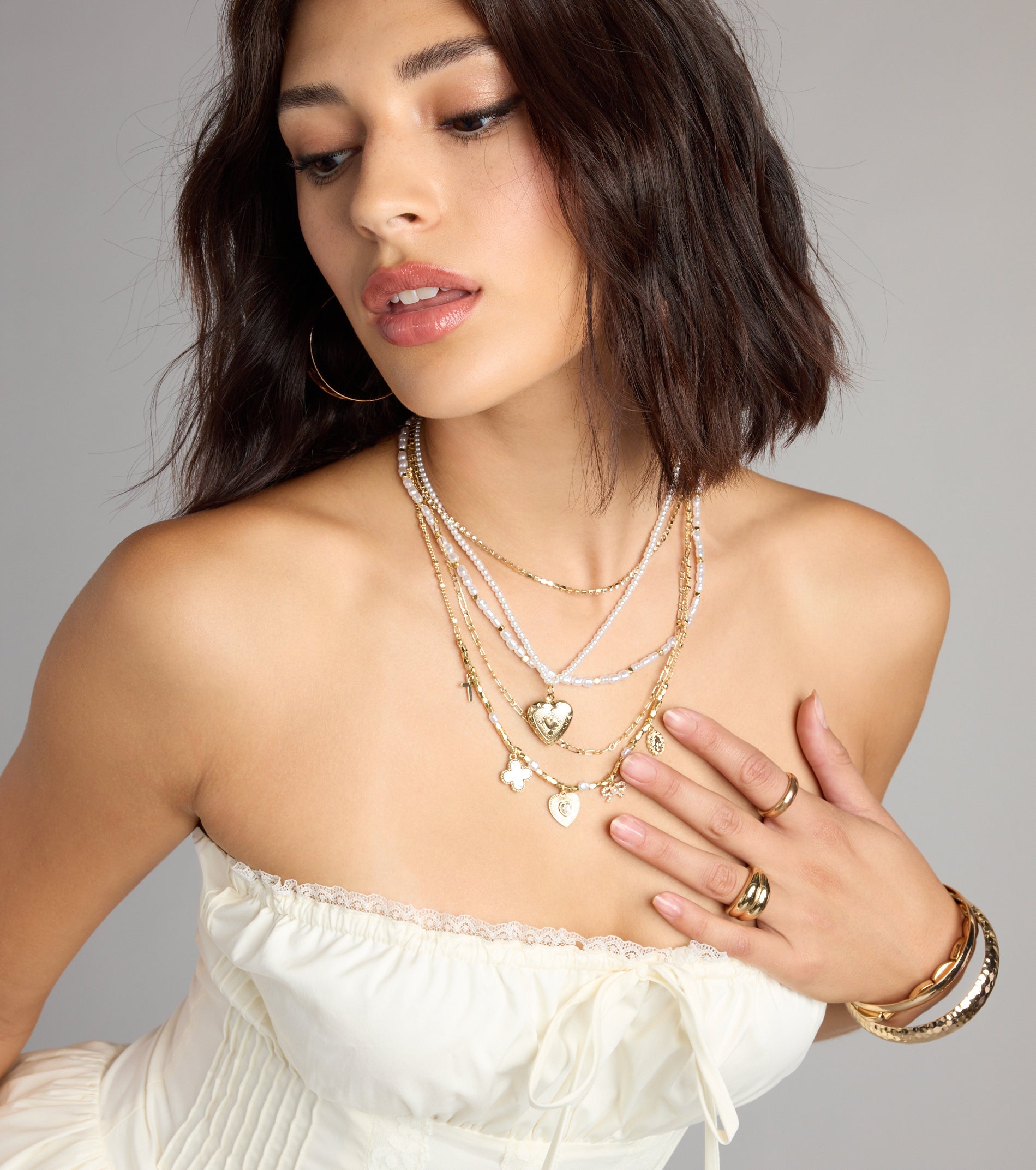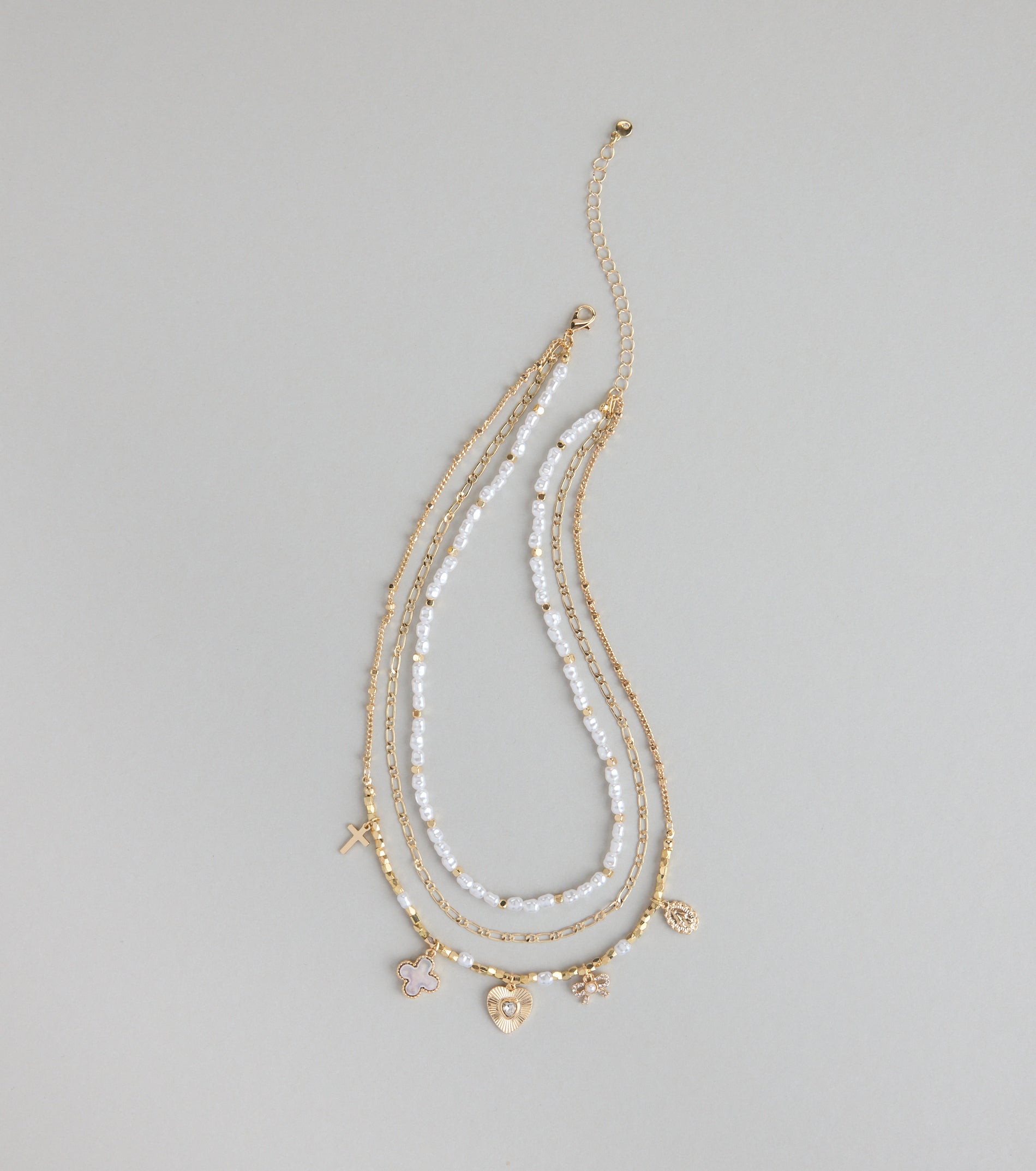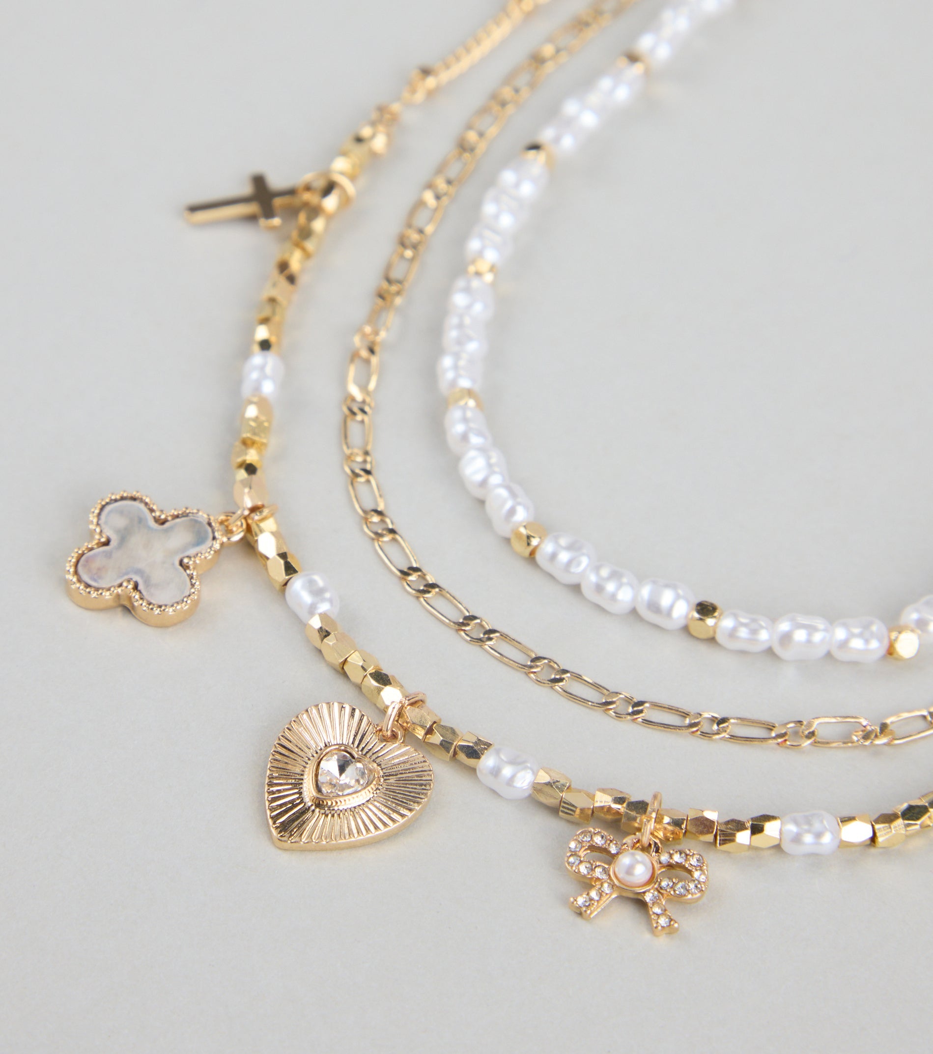 Because one necklace is never enough. This layered bead chain necklace brings together pearls. charms. and just...