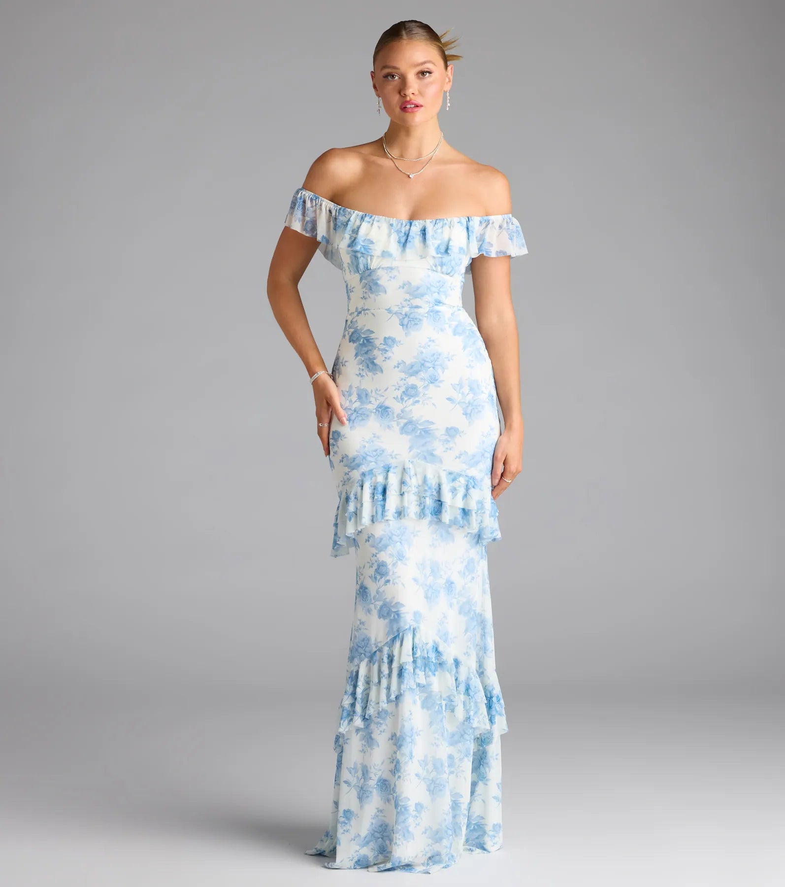 Charmaine Off-The-Shoulder Floral Formal Dress