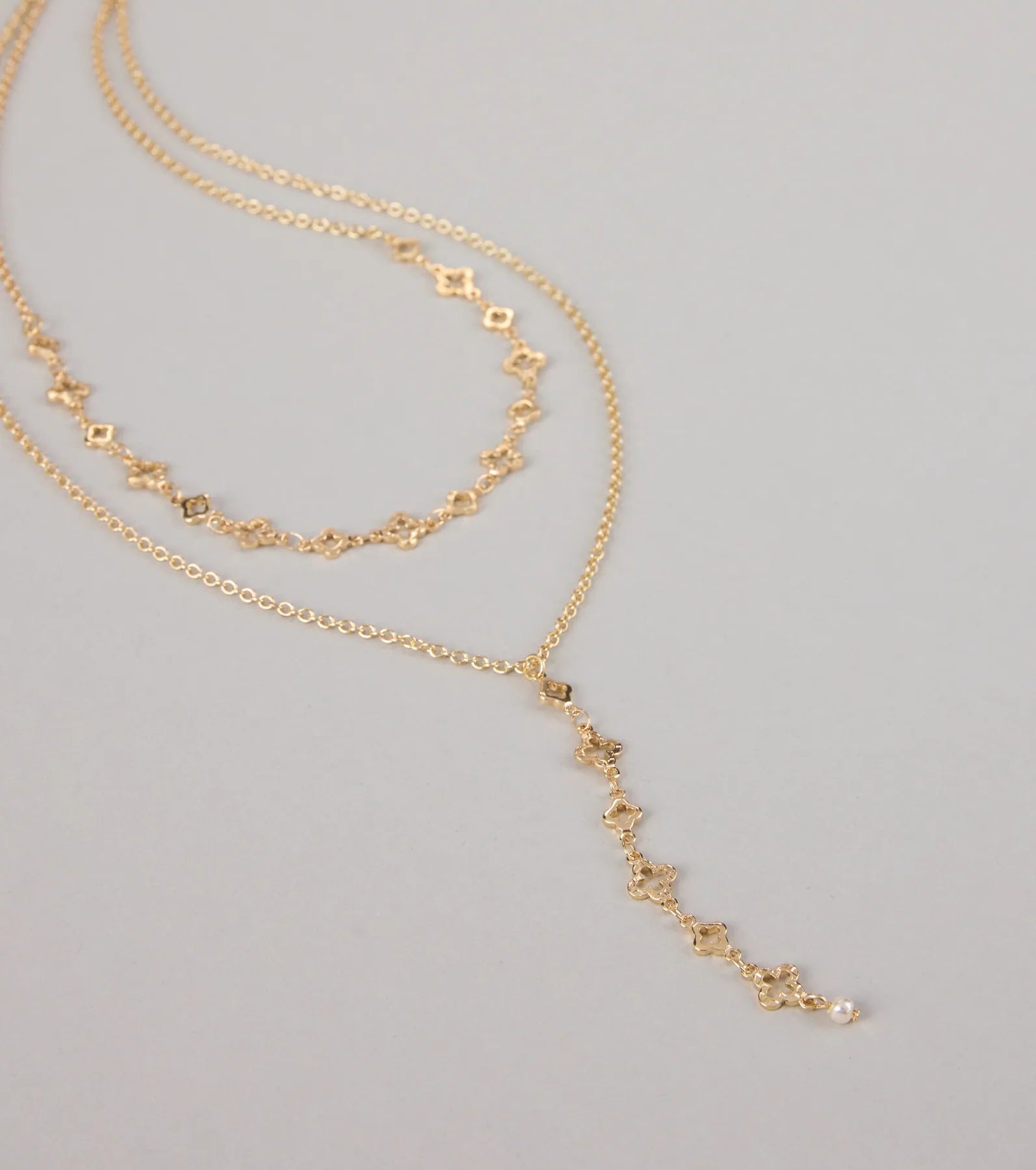 Charmed I'm Sure Clover Chain Lariat Necklace