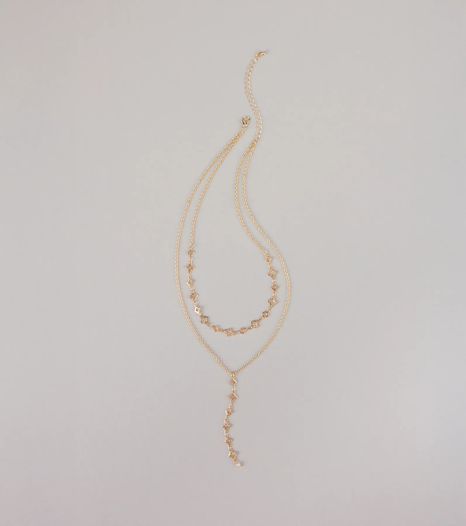 This one's giving flirty. effortless energy. The clover chain lariat necklace layers delicate chains with a dainty...