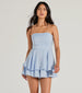Charmed Strapless Ruffled Woven Skater Romper