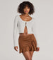 Unlock charm in this faux suede ruched ruffle skort featuring an on-trend mid-rise waist and a fitted...
