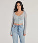 Charming Flocked Floral Mesh Long Sleeve Corset Top