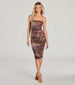 Chic Abstract Floral Ruched Mesh Midi Dress