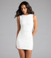 Elevate any casual day in this crepe mini dress. designed with pleating and a flattering bodycon fit....