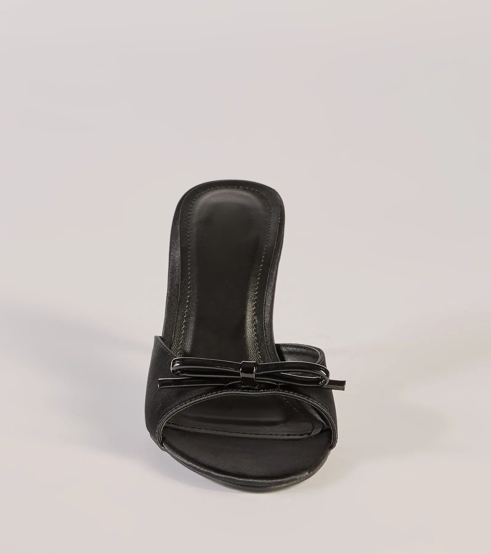 Chic Elegance Faux Leather Stiletto Bow Mules