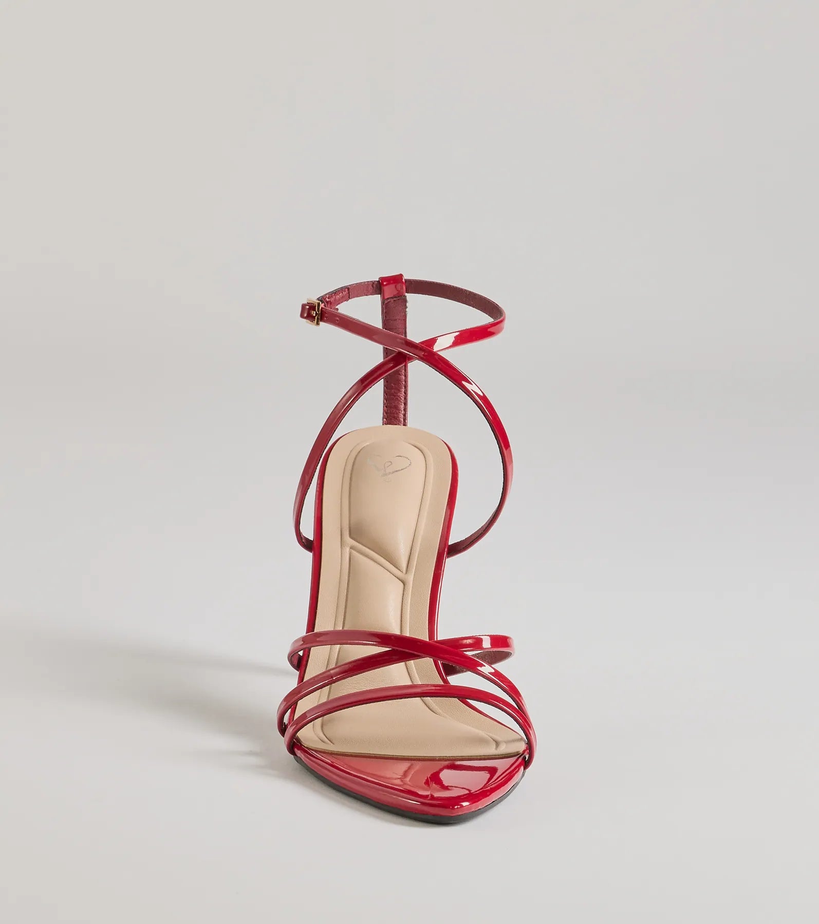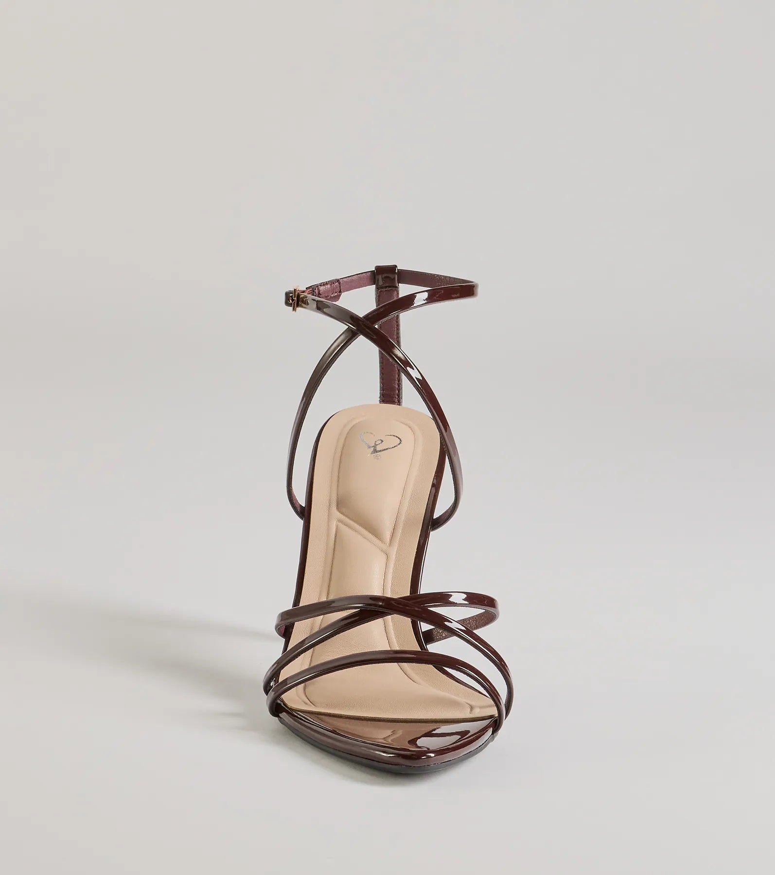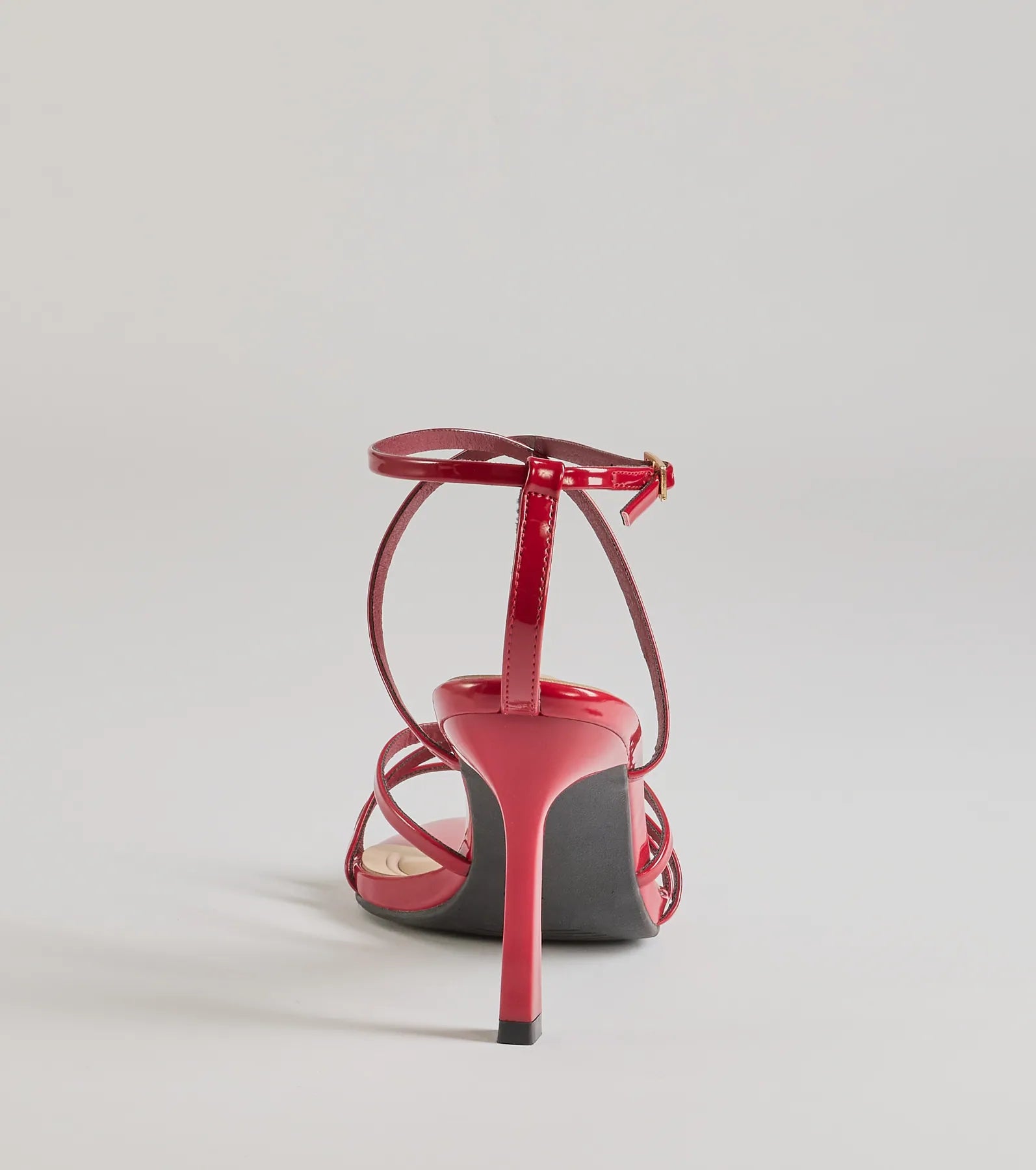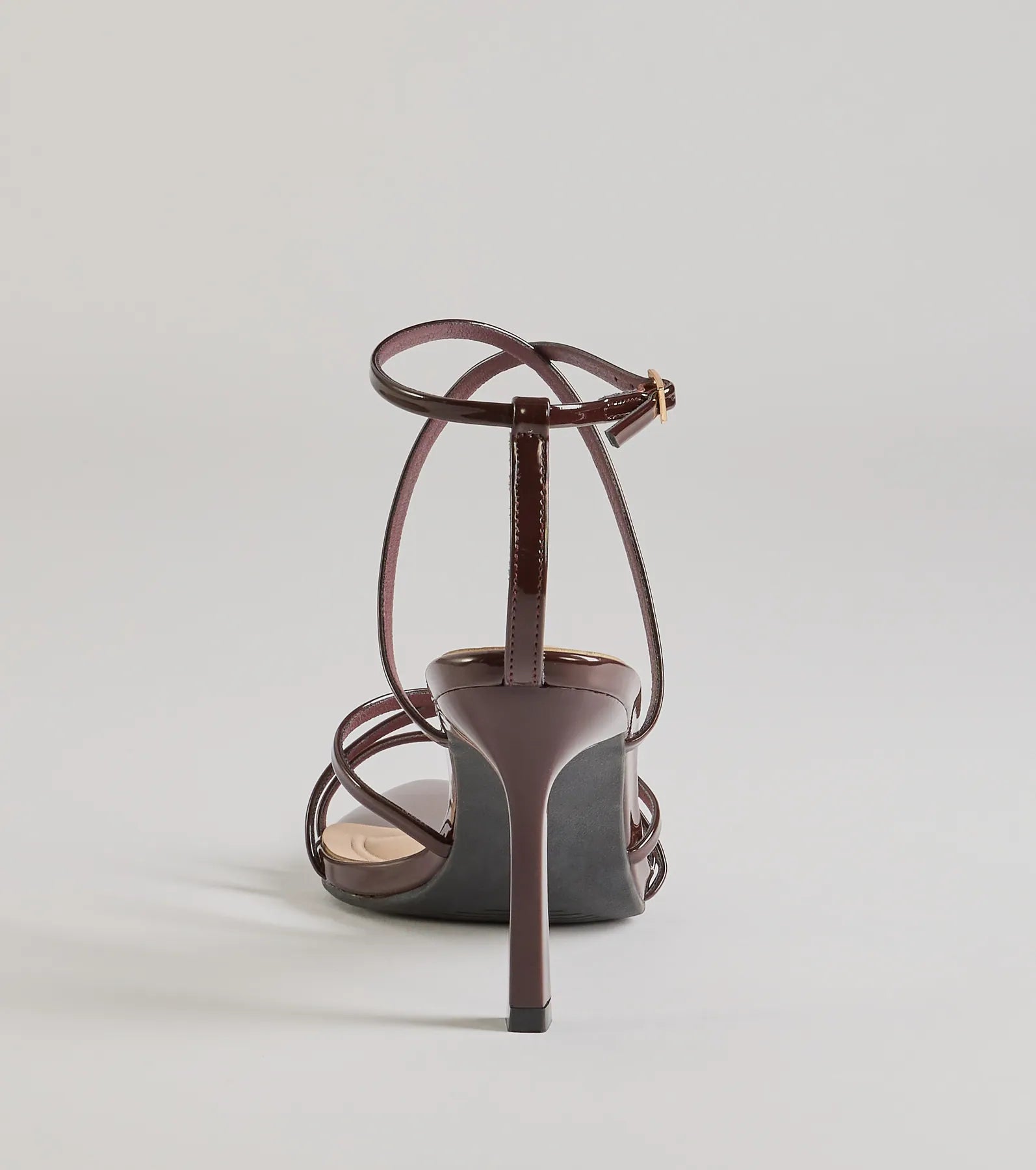 Chic Patent Faux Leather Strappy Stiletto Heels