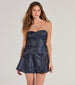 Showcase a chic romantic aura in this floral satin jacquard skater dress featuring a strapless sweetheart neckline....