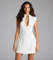 Show off your chic status at dressy dinners in this elevated crepe mini dress. The high neck...