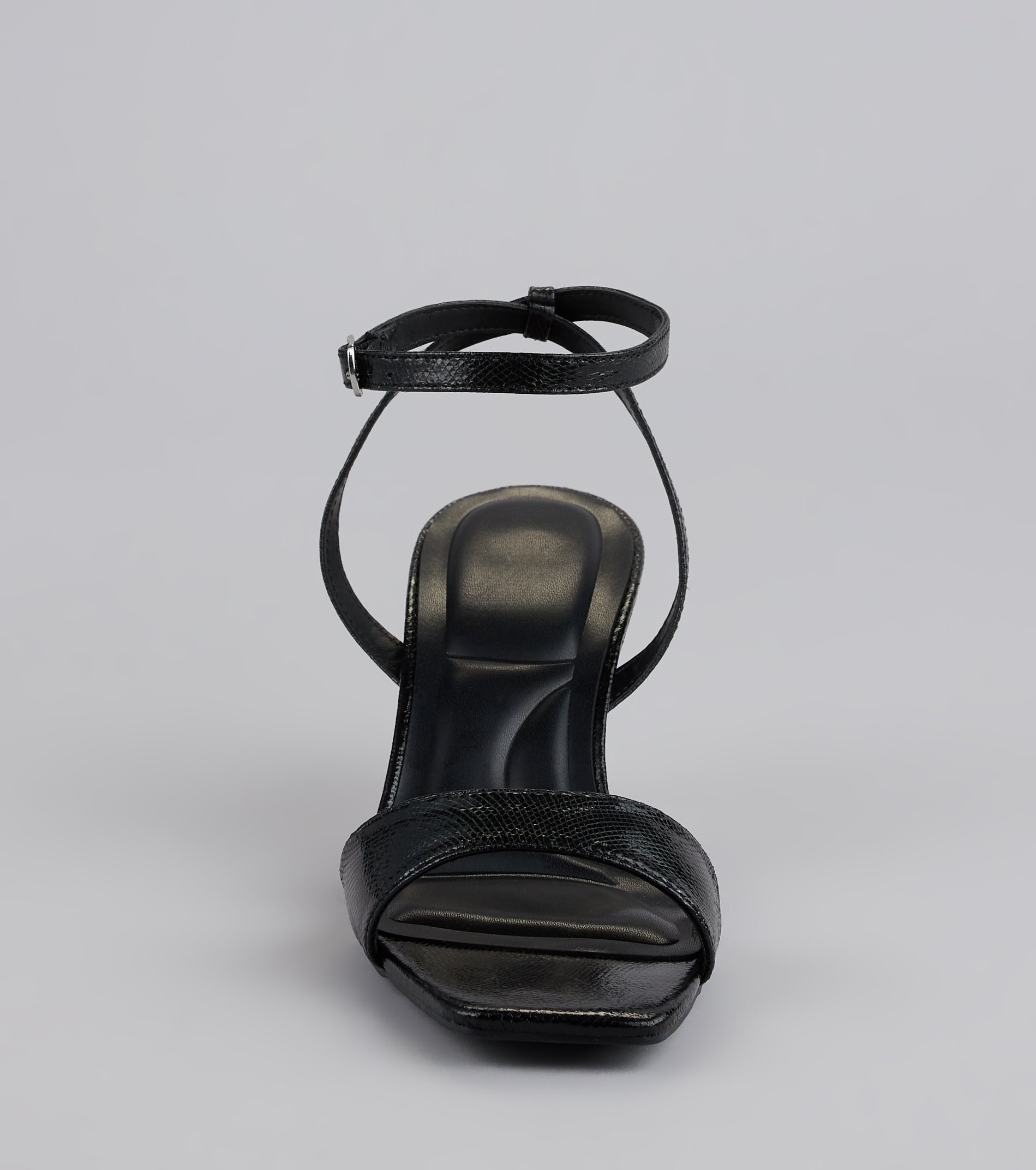 Step out boldly in these chic faux leather heels. Featuring a sleek square toe and a sleek...