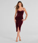 Special Occasion Bring elegance to your formal event in a velvet dress that features a sleeveless cowl neckline...