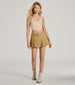 Hit the city streets looking sensational in this mini skort! It features a high-rise waist with dual...