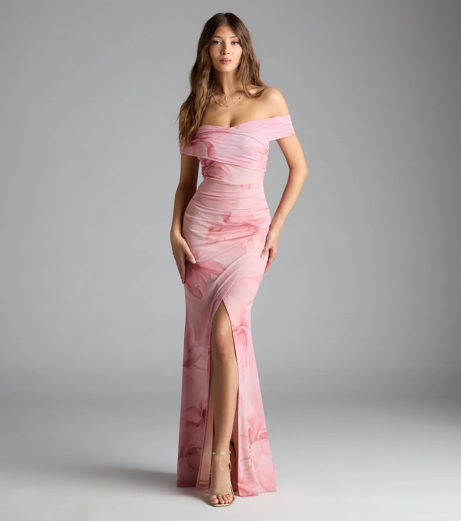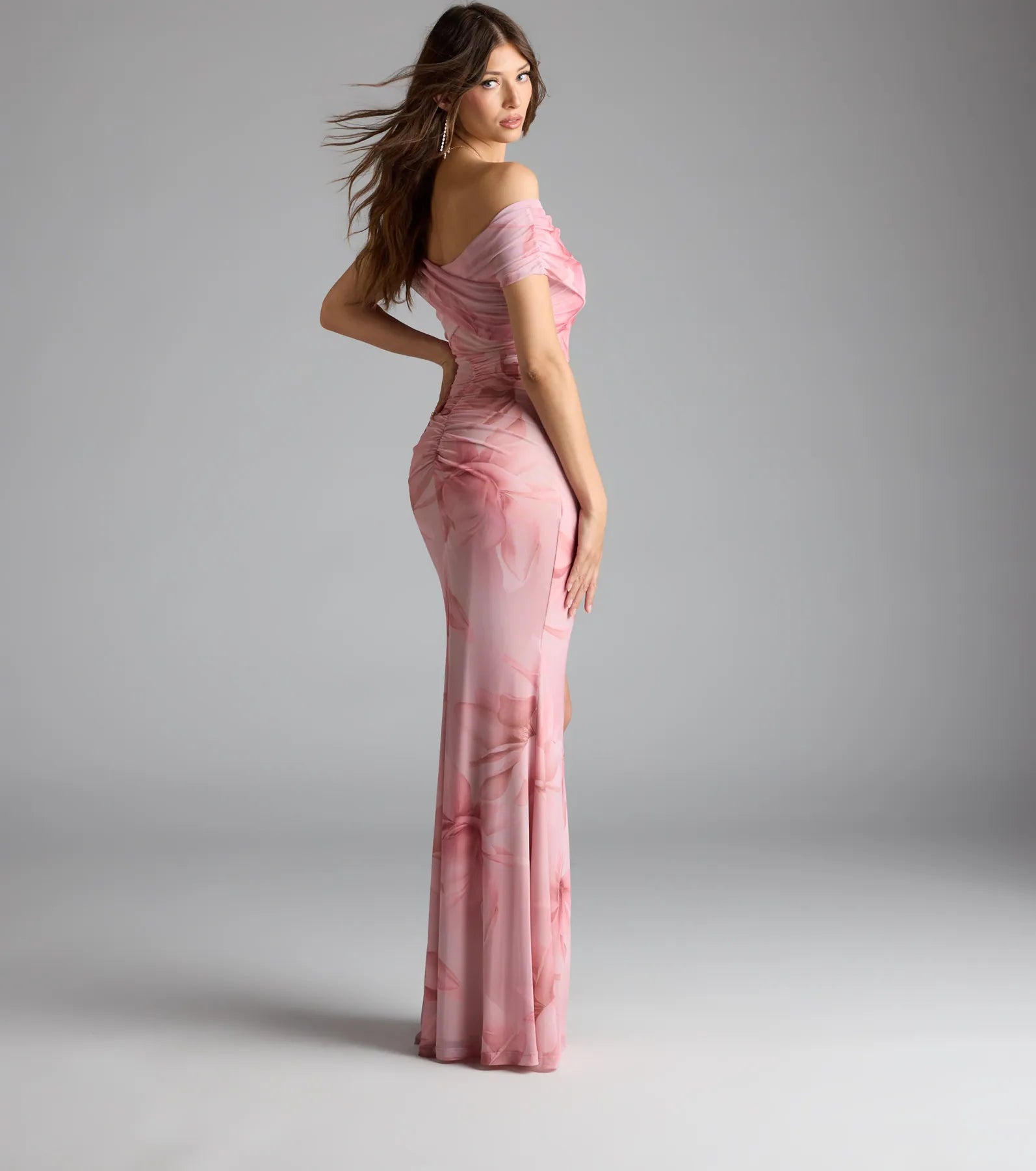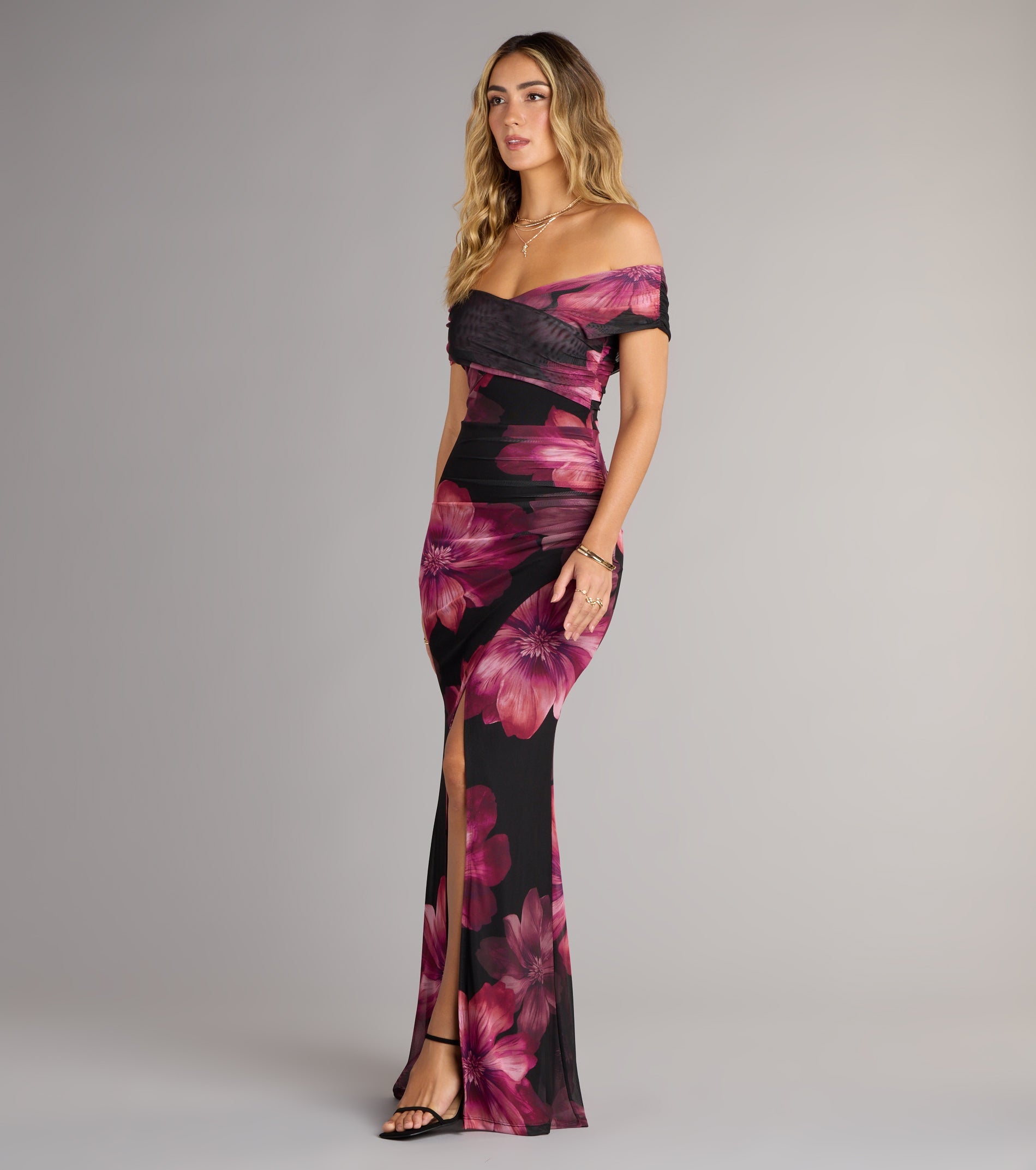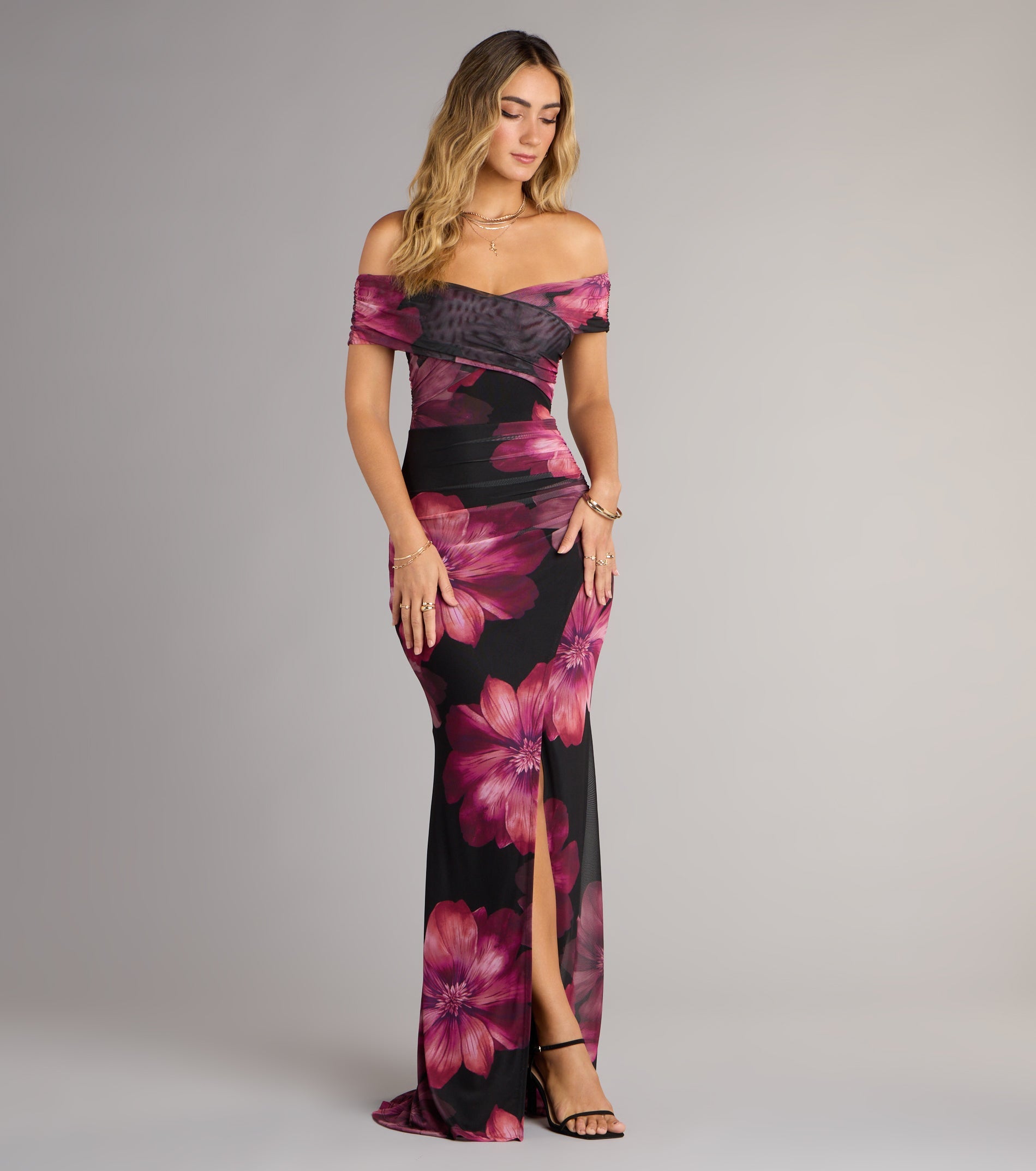 Cornelia Off-The-Shoulder Slit Floral Formal Dress