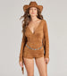 Country Babe Long Sleeve Fringe Faux Suede Romper
