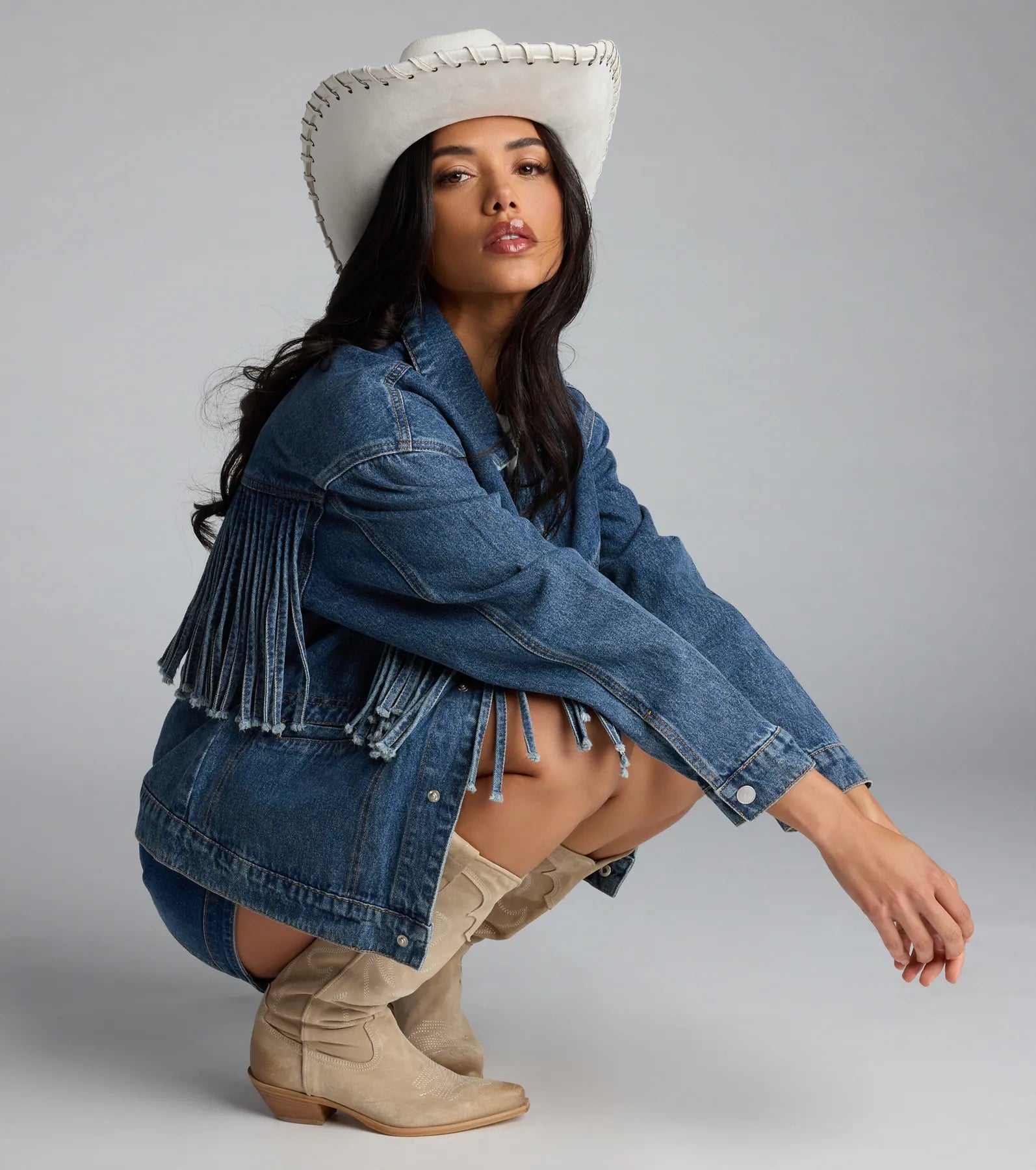 You're a country girl at heart. so this faux suede cowboy hat featuring a cool whipstitch trim...