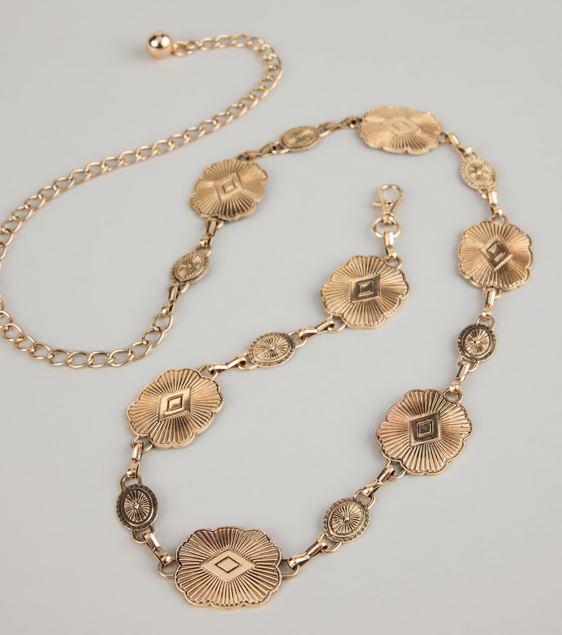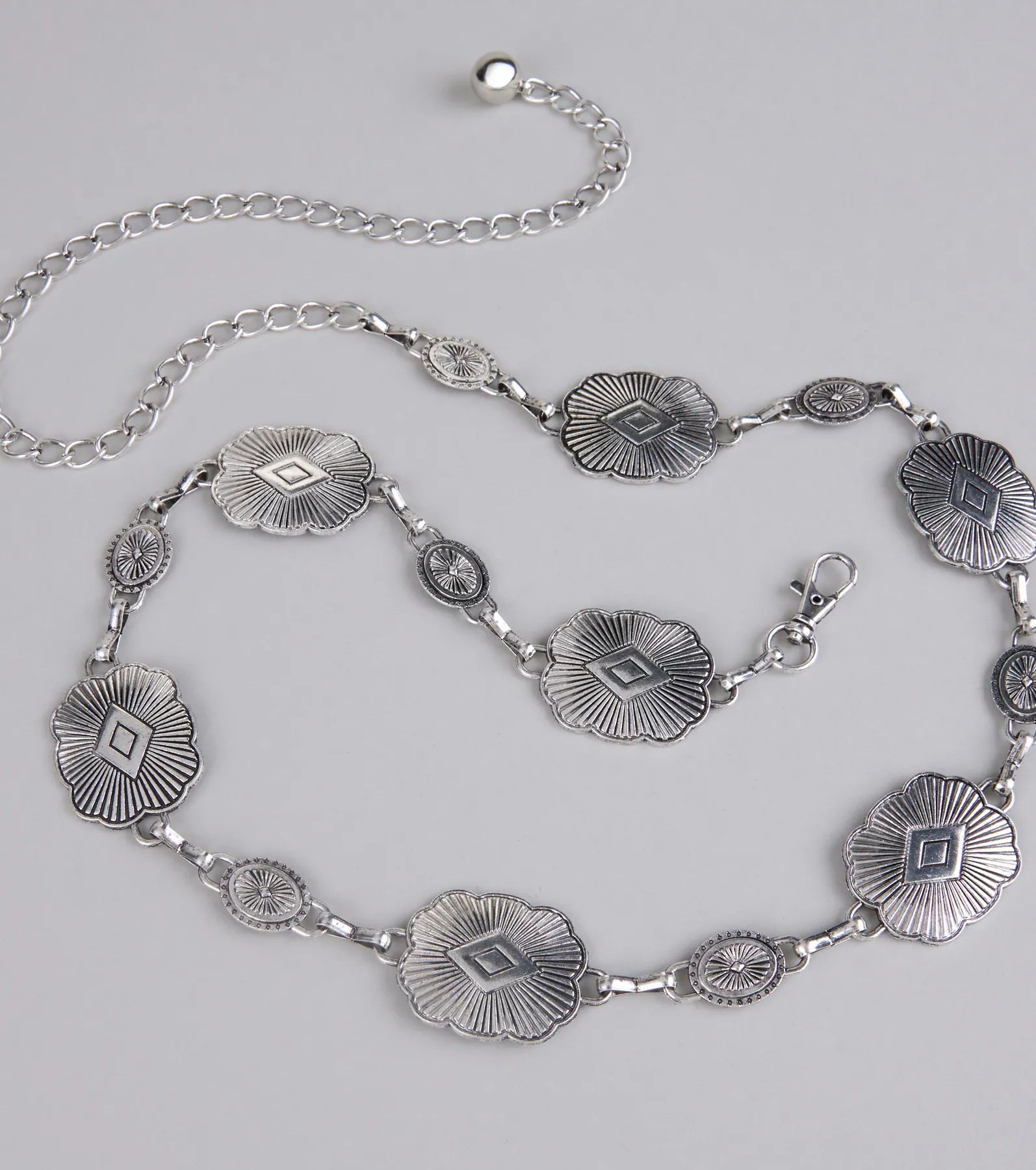 Serving rodeo realness with a side of slay. This etched concho chain belt is your new fave...