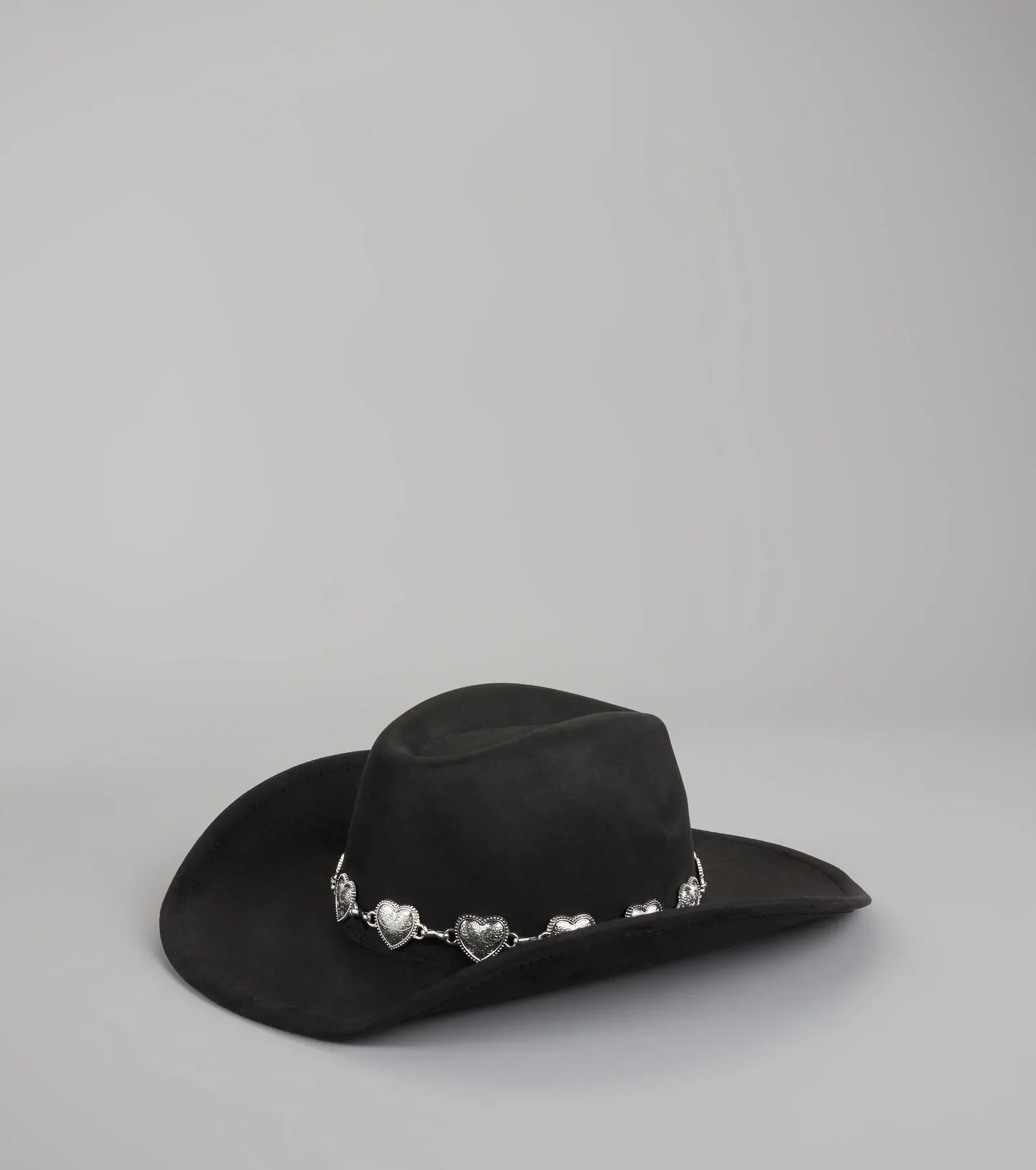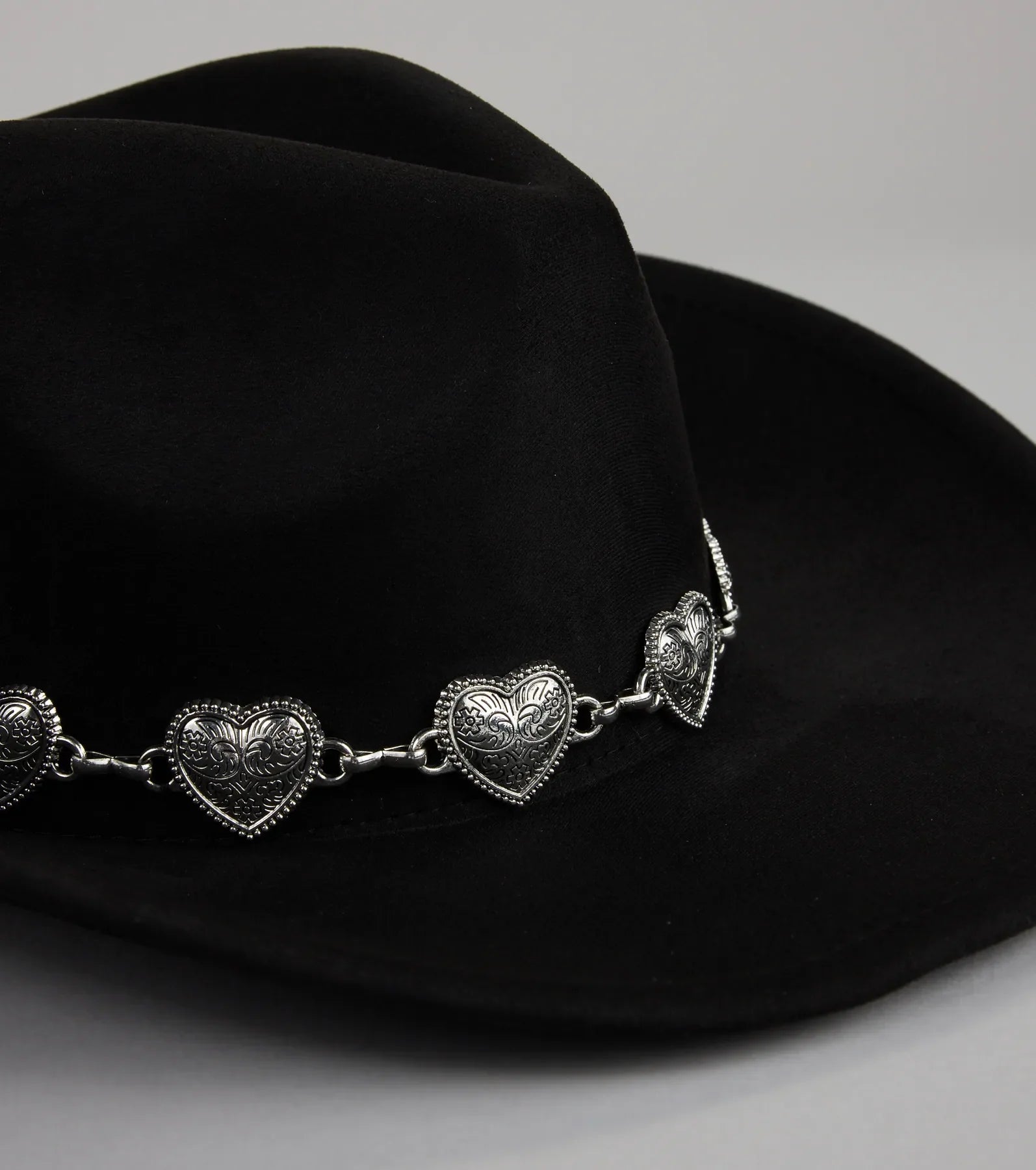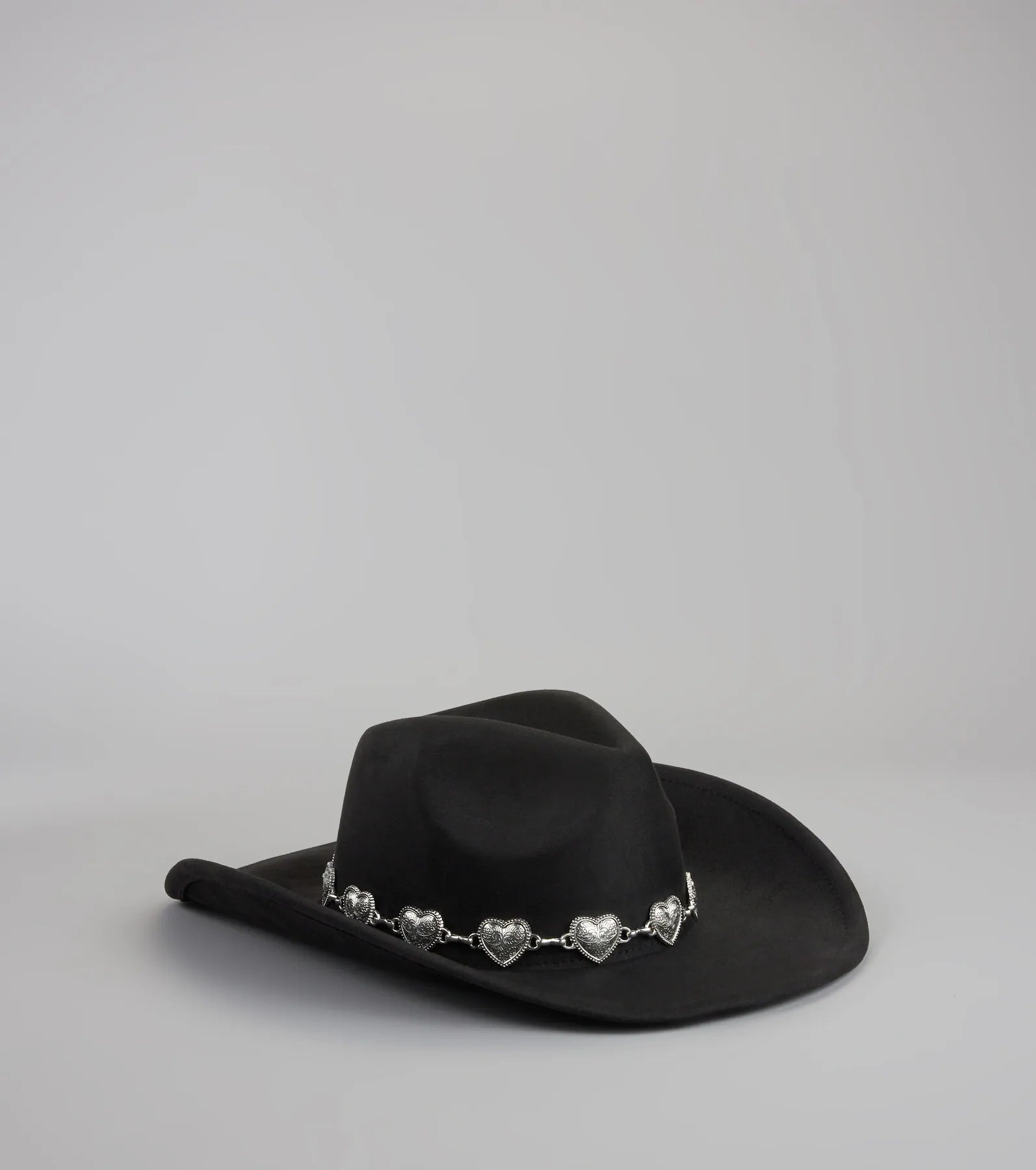 Saddle up. but make it fashion. This heart chain trim cowboy hat is giving rodeo glam with...