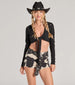 Show up and strut in style at your Halloween party as a cowgirl outlaw in this tie-front...