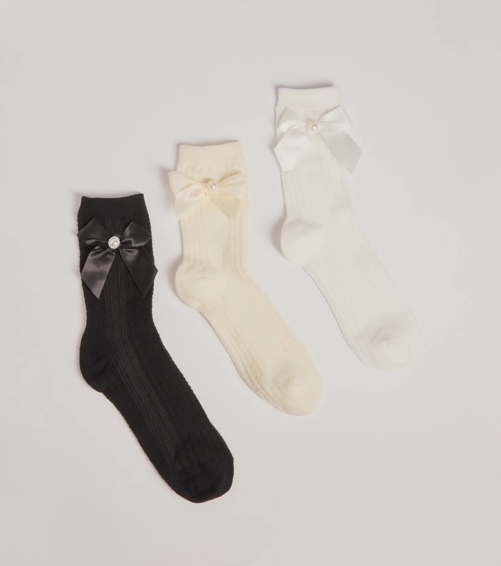 Cozy Glam Bow And Faux Pearl Multi-Sock Pack